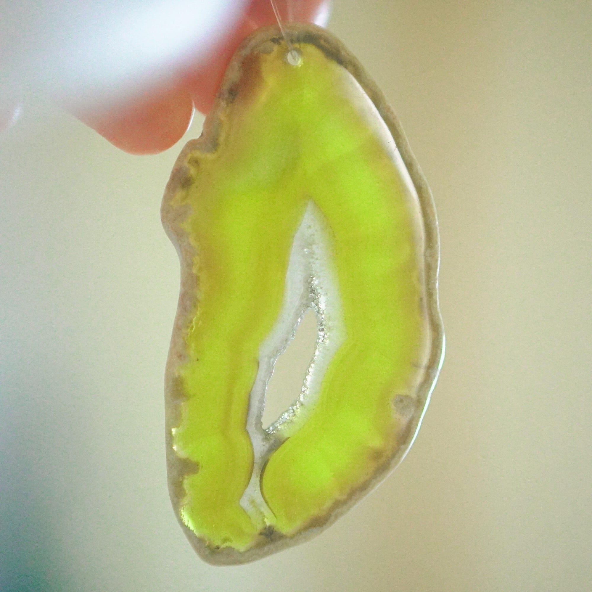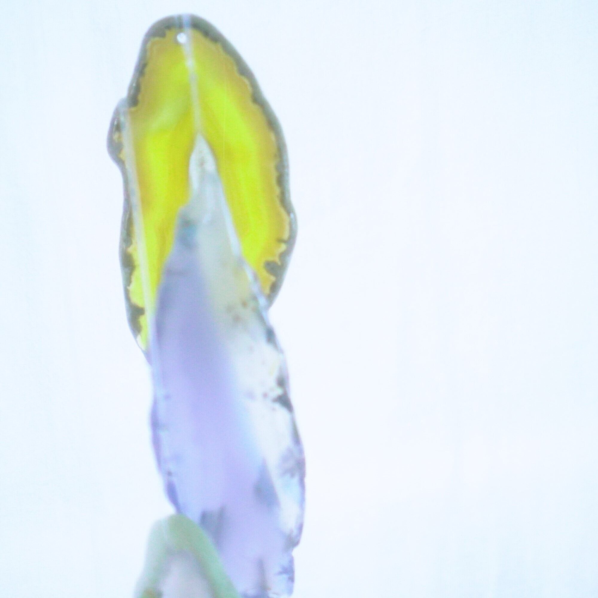 ✧✧✧染色の石なので耐光性(光による経年でのカラー変化の耐性)に優れているわけではなく一日の中で長時間強い日光に当たるような場所に飾られるのはおすすめしないのですが、陽光に透かした時にだけ真価を発揮する美しさがありますので、是非たまに翳したりして光と一緒にお楽しみいただけたらと思っております。特に濃い鮮やかな色など、気になられる場合は、日光のあまり当たらない場所に飾っていただけたらと思います✧✧✧