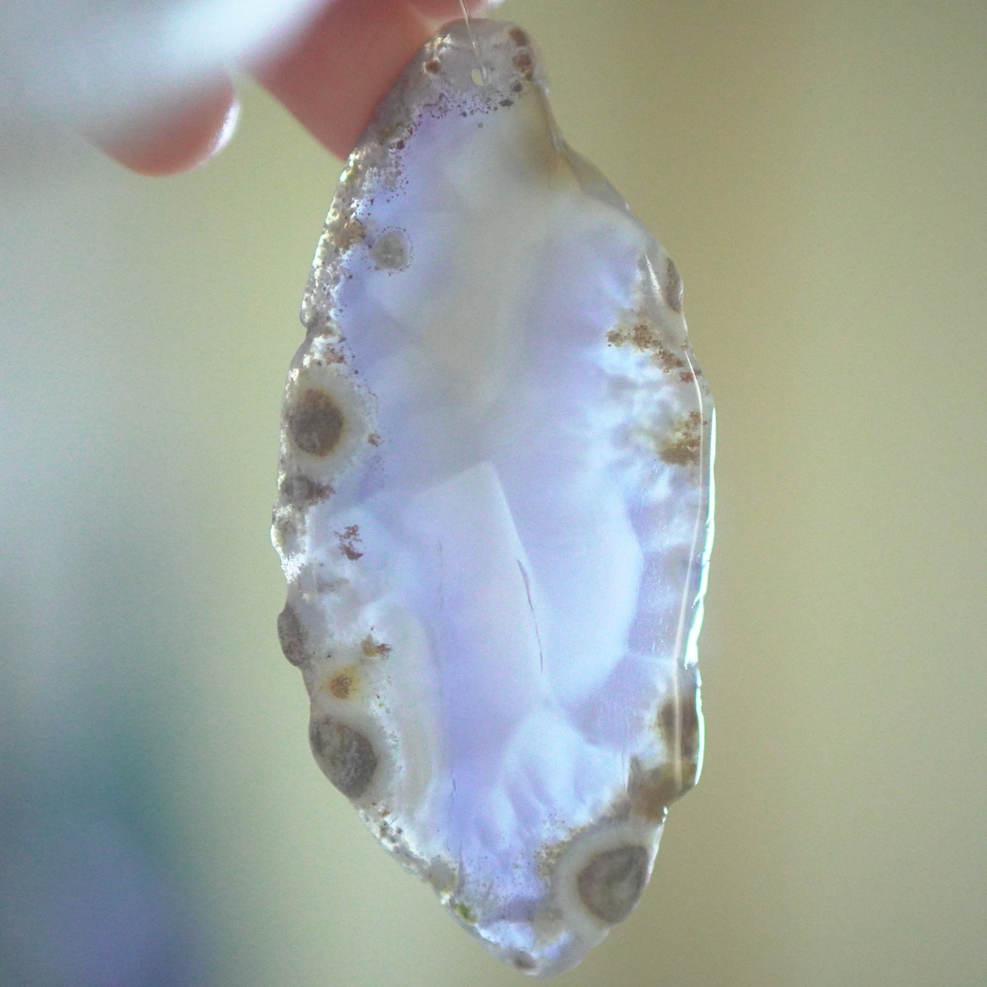 ✧✧✧瑪瑙の濃い色は染色によるもので、水に濡れたり布で擦ると多少色落ちします。飾るものなので大丈夫かと思いますが白いお洋服などには触れないようにされてください。汚れが気になる時は若干の色落ち前提で水を軽く含ませた布やティッシュでやさしく拭いていただくことは大丈夫です。また、画像のような細かなヒビ・カケはスライスメノウの加工上かなり多くあるので、チャイムとしての機能や全体の外観を著しく損なうものを除き、見た目の完璧さ<音色の響き重視で選んで使用しております、よろしくお願い致します✧✧✧