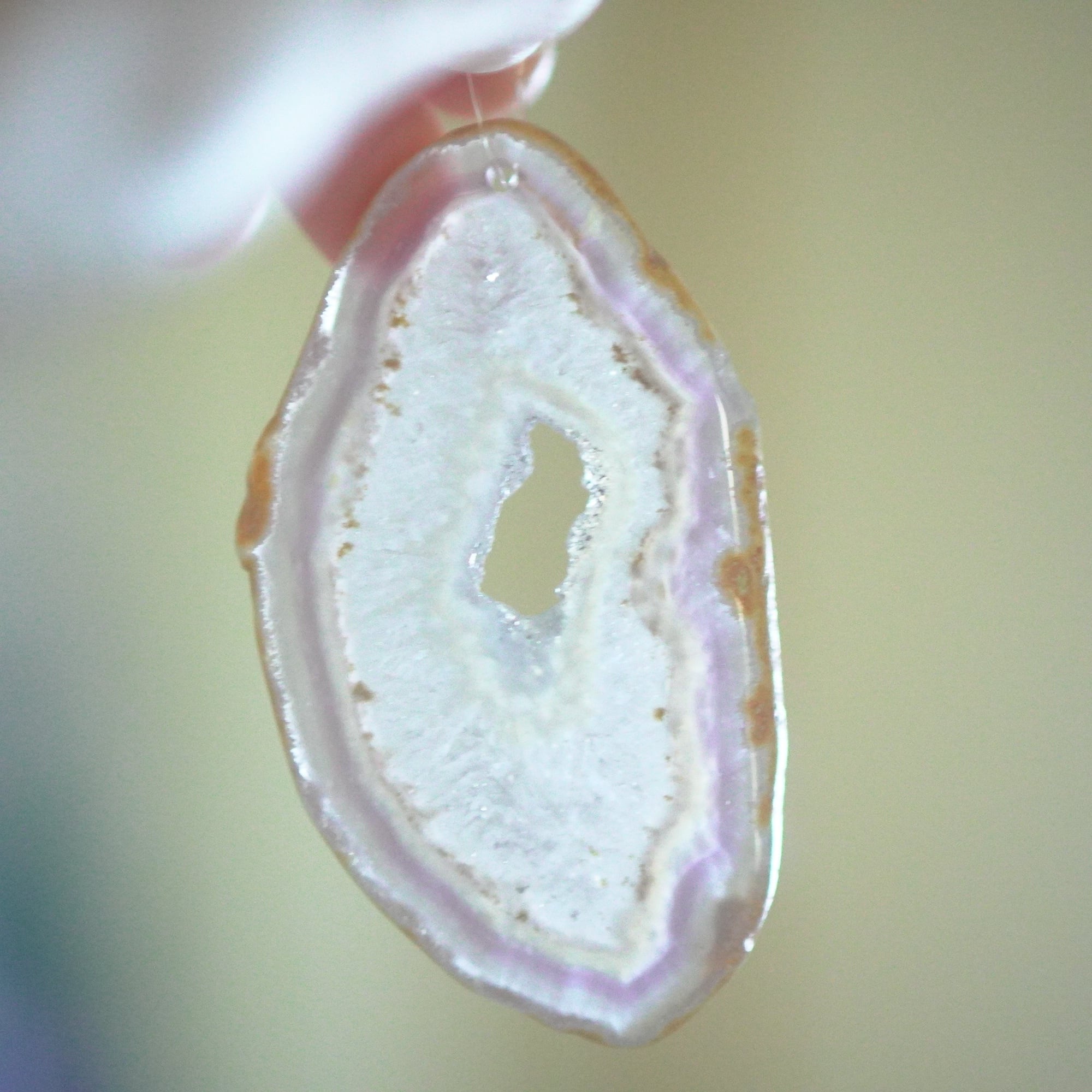Agate Slice , Natural Wood , Nylon Cord , Metal