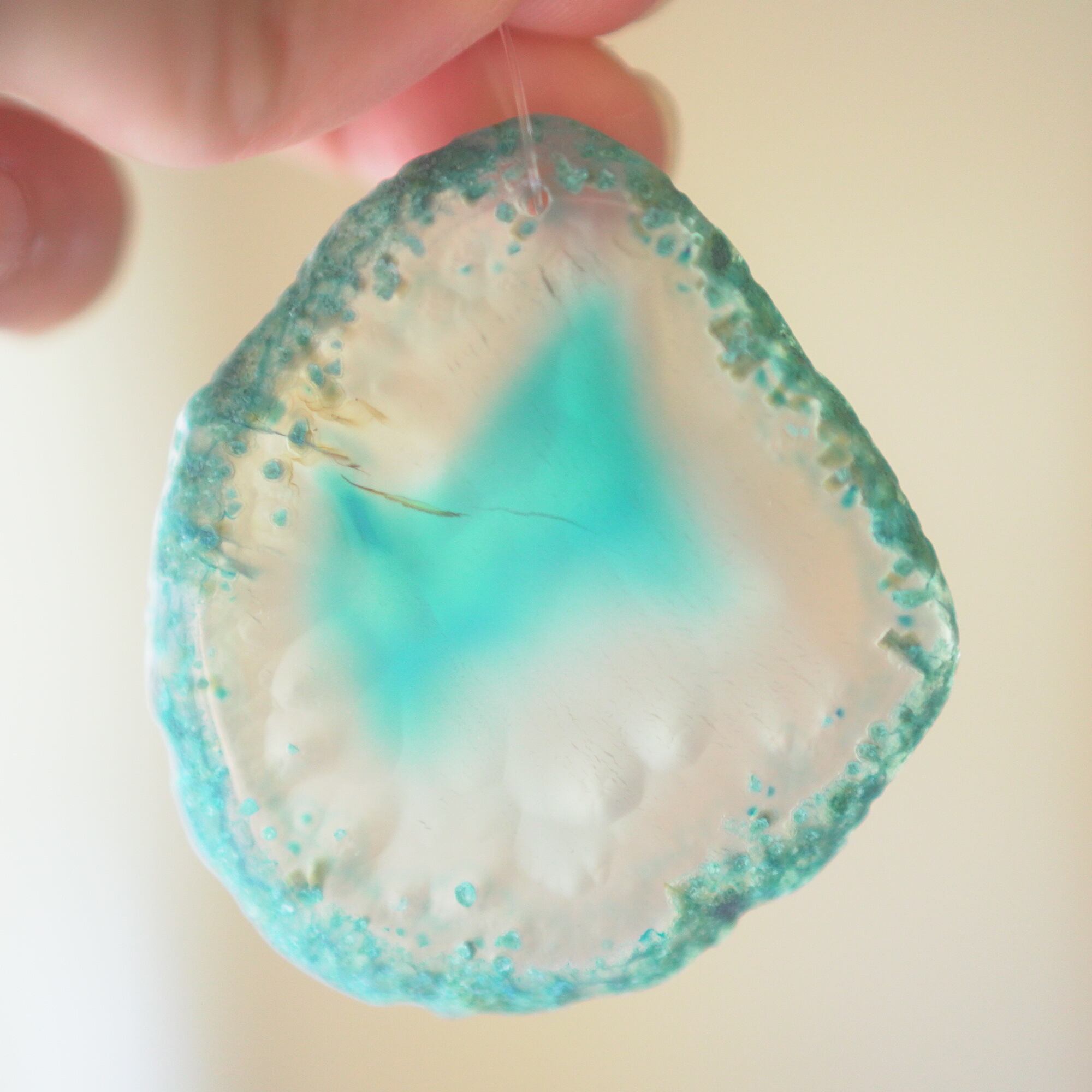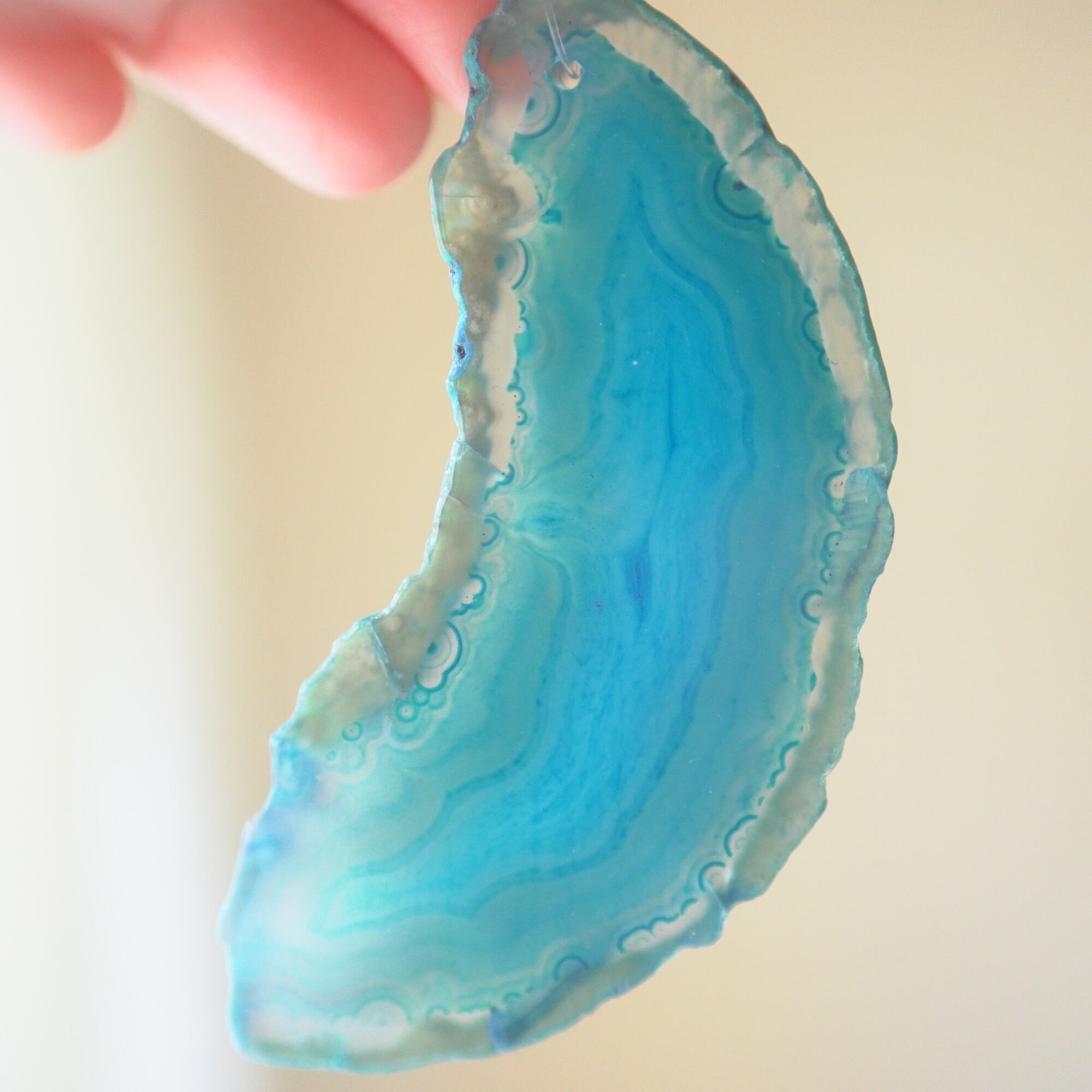 ✧染色の石なので耐光性(光による経年でのカラー変化の耐性)に優れているわけではなくベランダなど一日の中で長時間強い日光に当たるような場所に飾られるのはおすすめしないのですが、陽光に透かした時にだけ真価を発揮する美しさがありますので、是非、時折翳したりして光と一緒にお楽しみいただけたらと思います。特に濃い鮮やかな色など、色変化が気になられる場合は、日光のあまり当たらない場所に飾ってくださいね✧