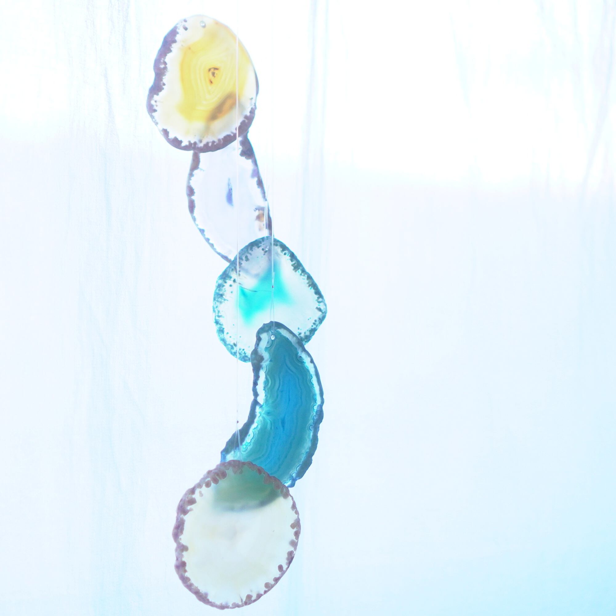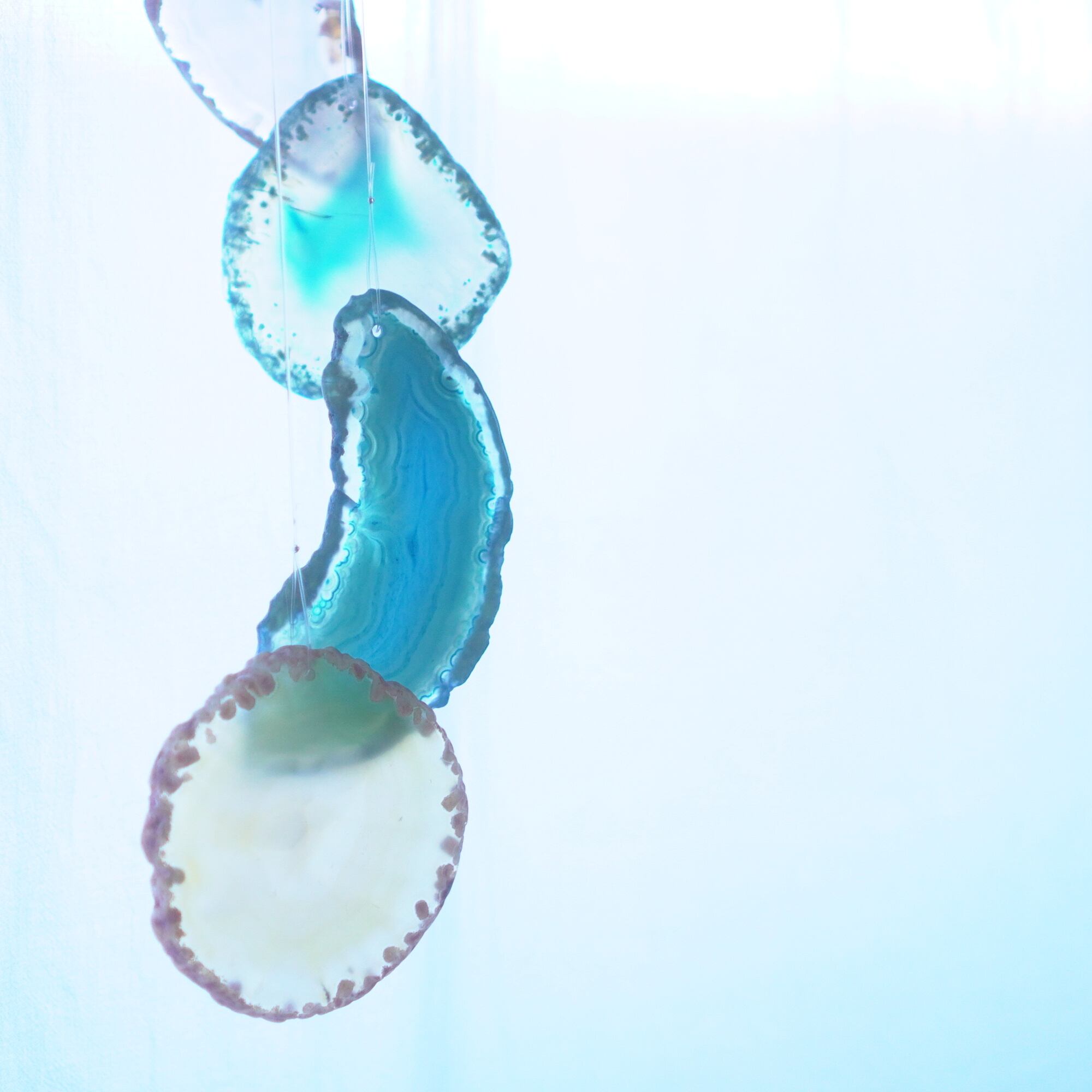 連なるアゲートが風を受けて揺れるとチリンチリン、美しい響きの音が鳴りとても癒されます。