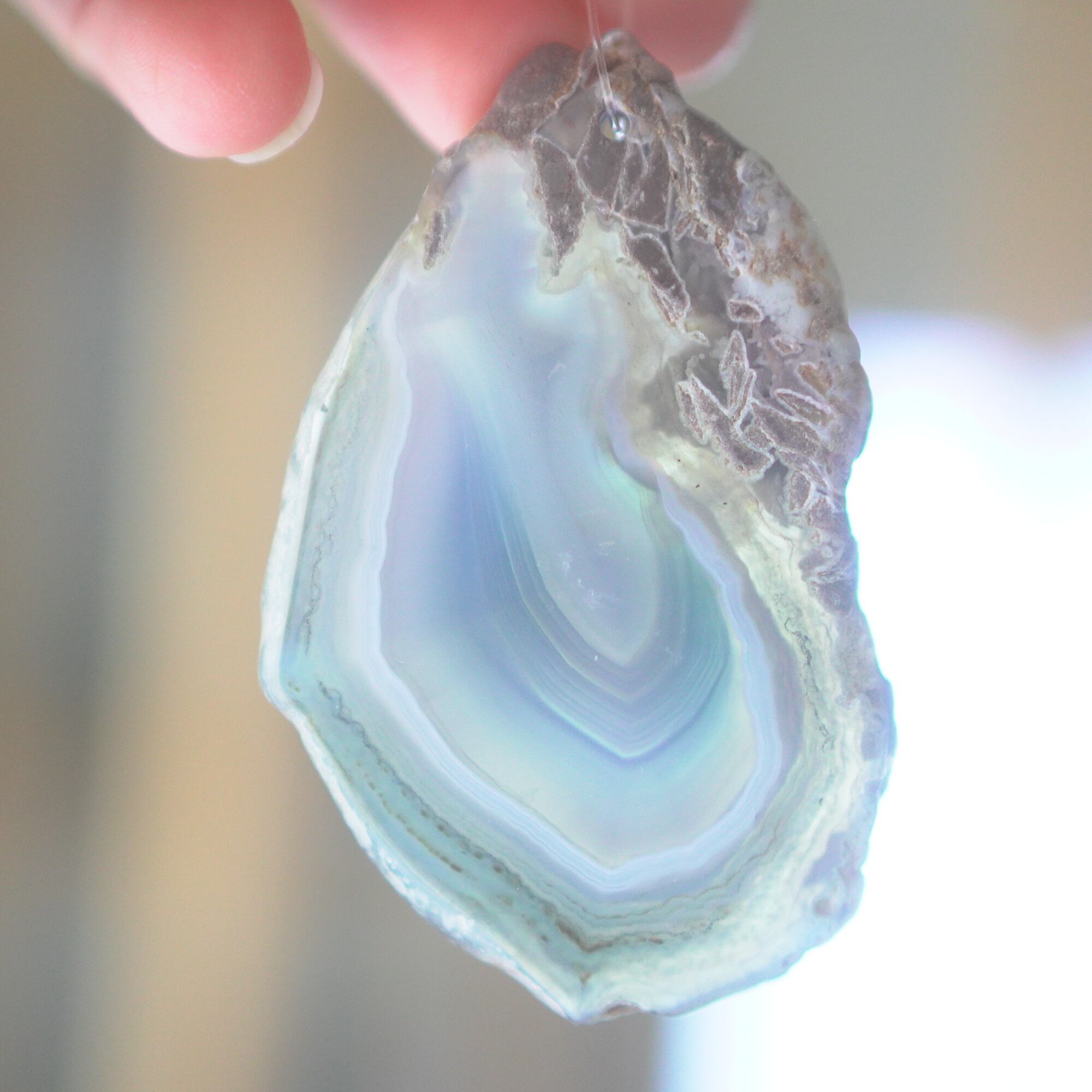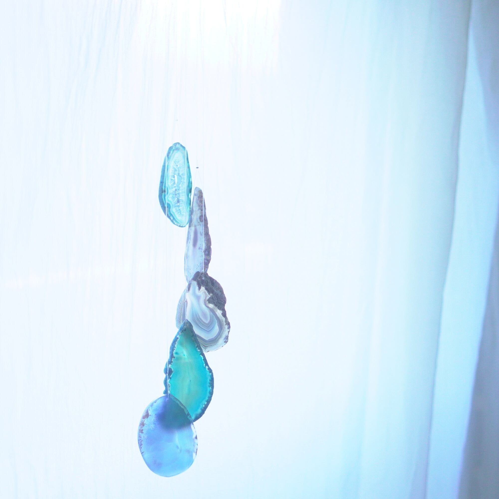 連なるアゲートが風を受けて揺れるとチリンチリン、美しい響きの音が鳴りとても癒されます。