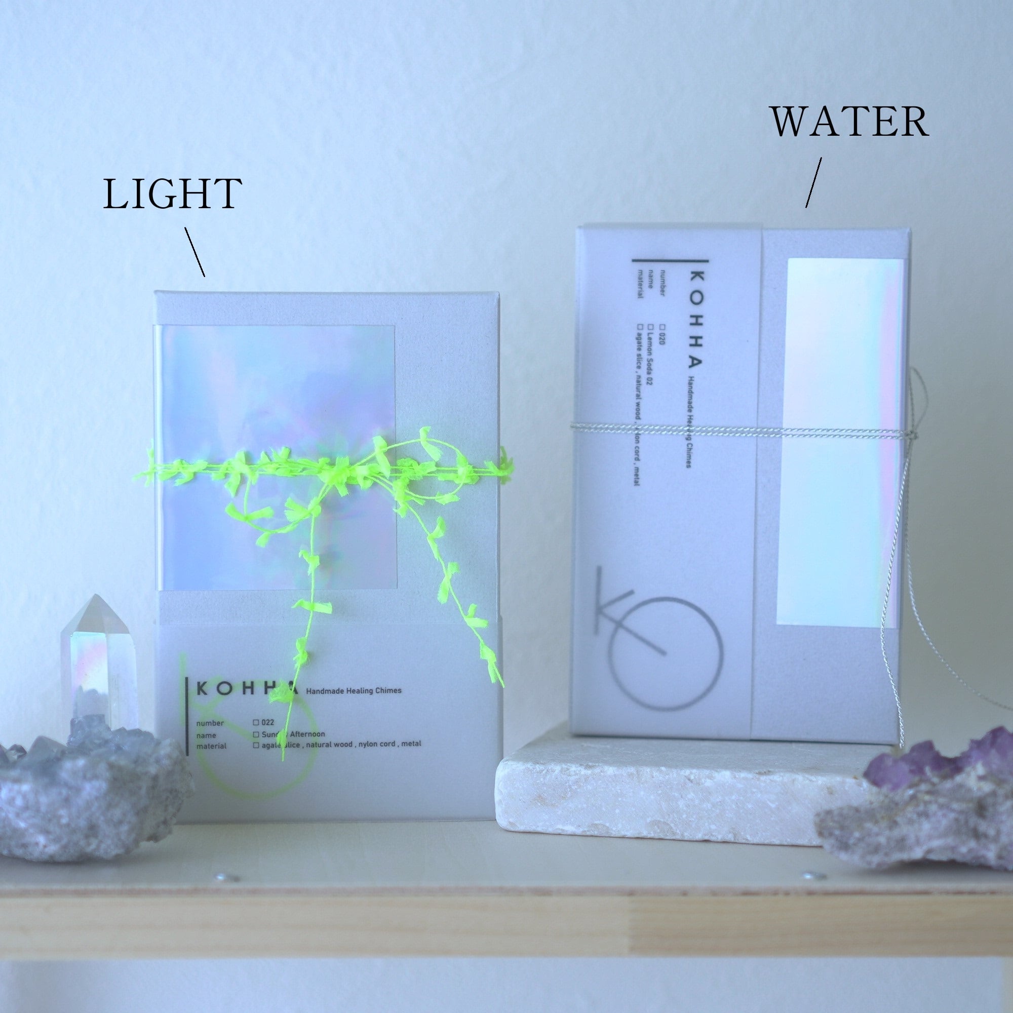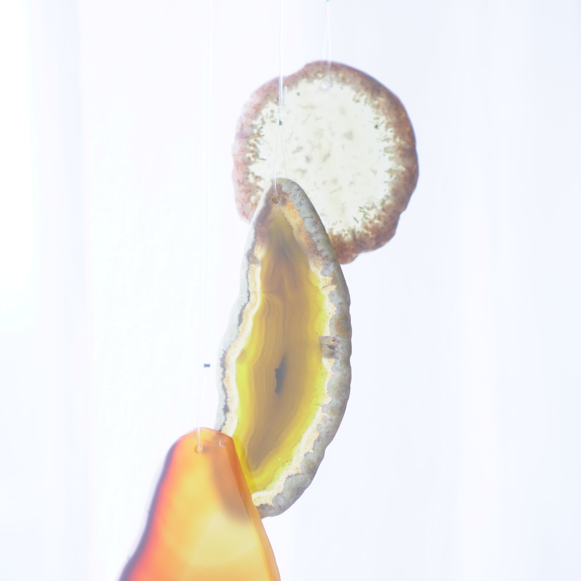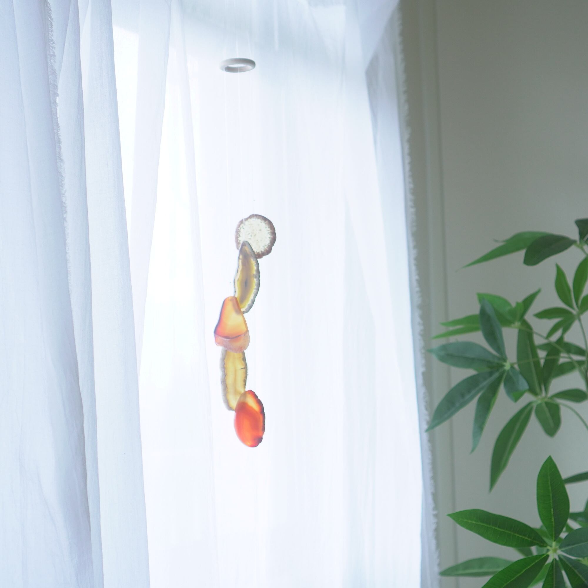 連なるアゲートが風を受けて揺れるとチリンチリン、美しい響きの音が鳴りとても癒されます。