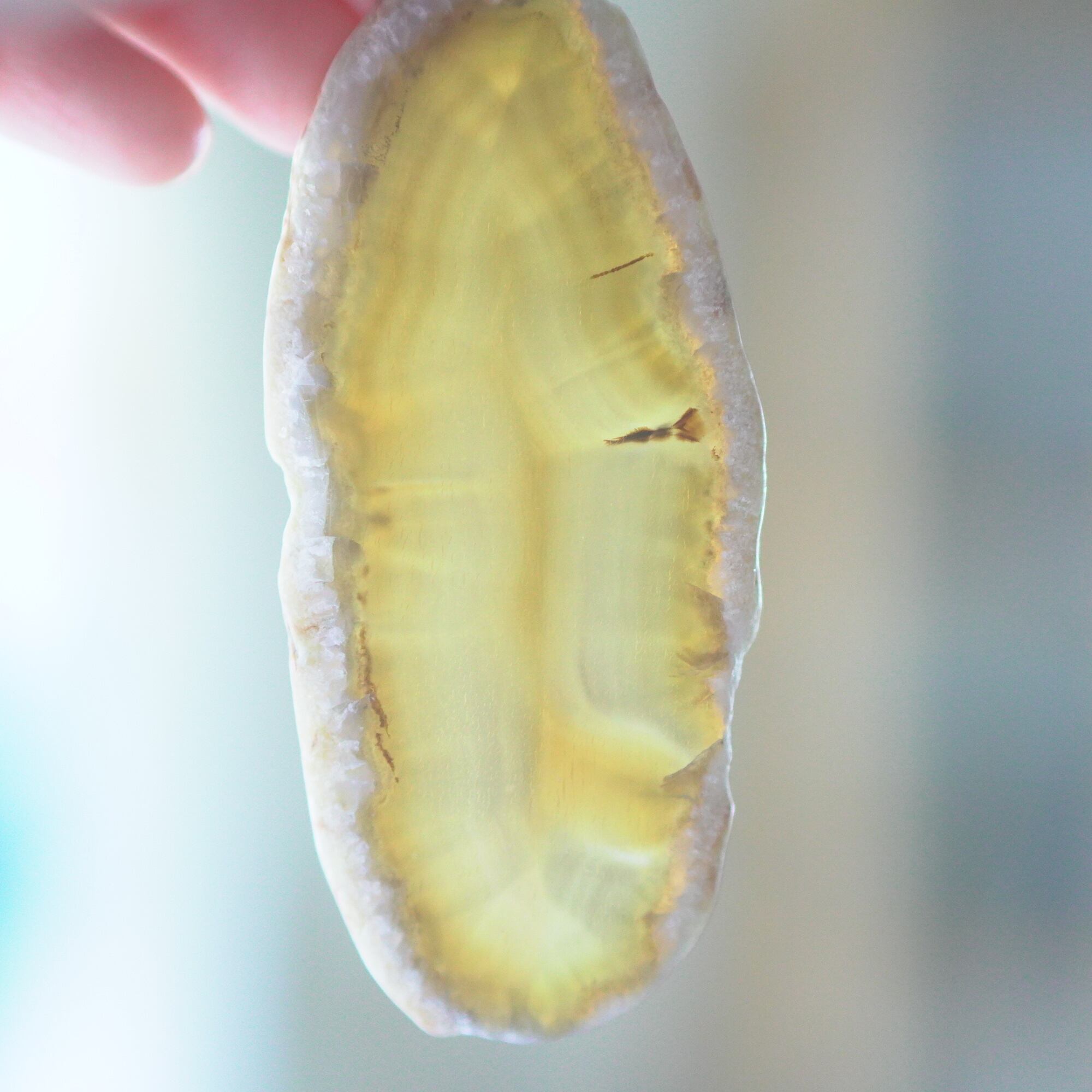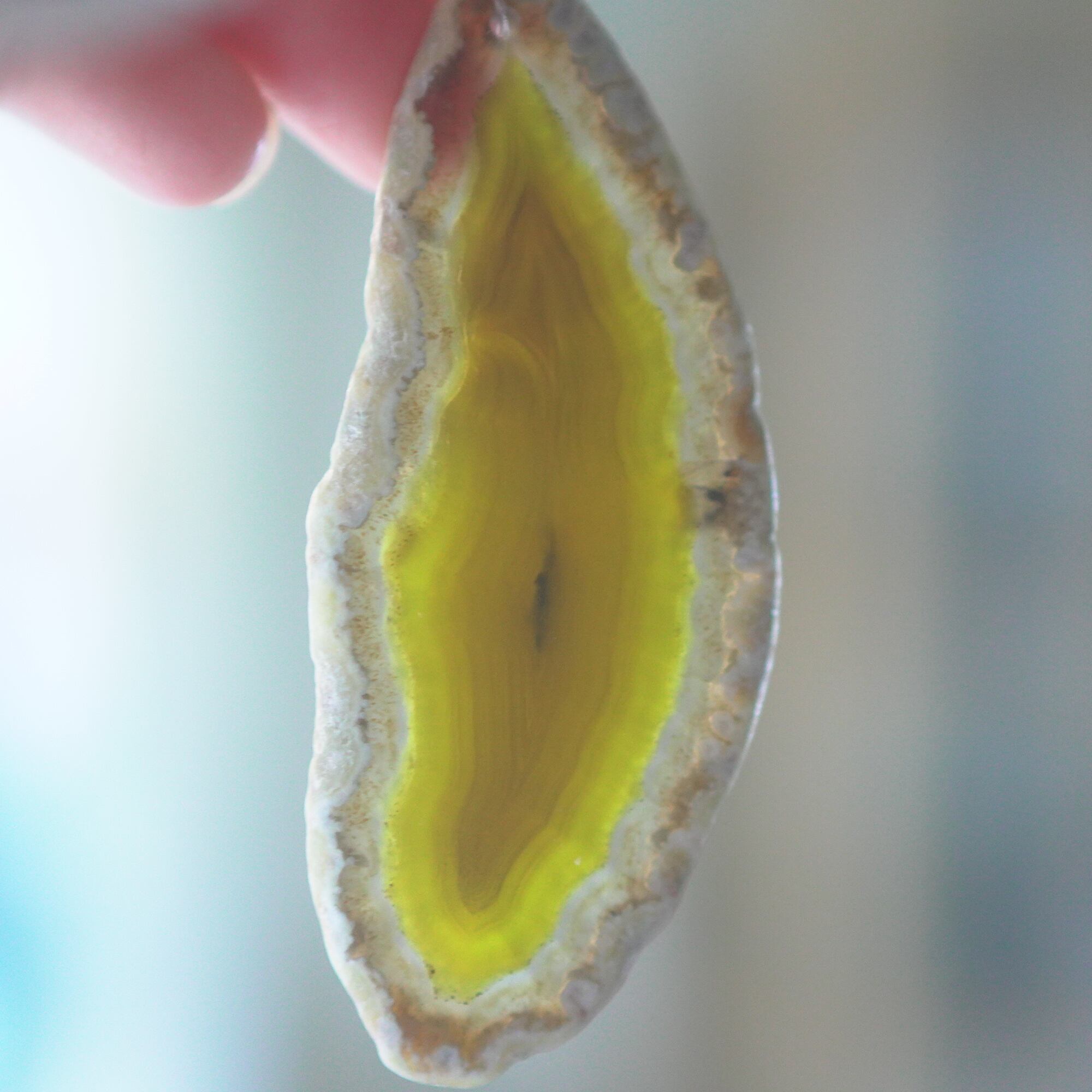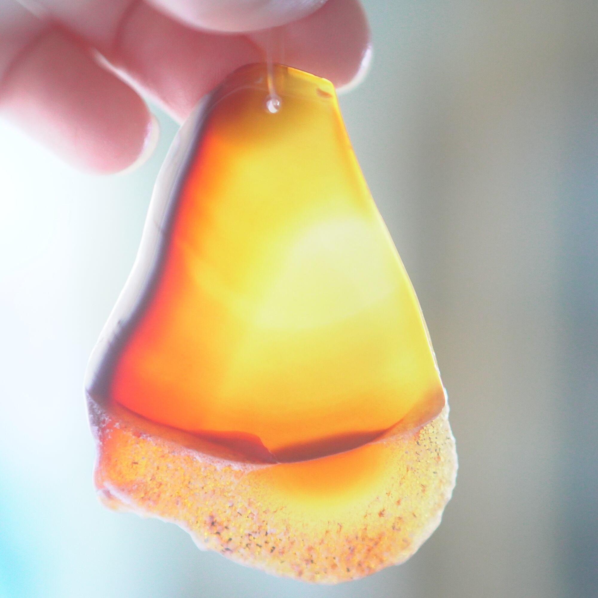 ✧染色の石なので耐光性(光による経年でのカラー変化の耐性)に優れているわけではなくベランダなど一日の中で長時間強い日光に当たるような場所に飾られるのはおすすめしないのですが、陽光に透かした時にだけ真価を発揮する美しさがありますので、是非、時折翳したりして光と一緒にお楽しみいただけたらと思います。特に濃い鮮やかな色など、色変化が気になられる場合は、日光のあまり当たらない場所に飾ってくださいね✧