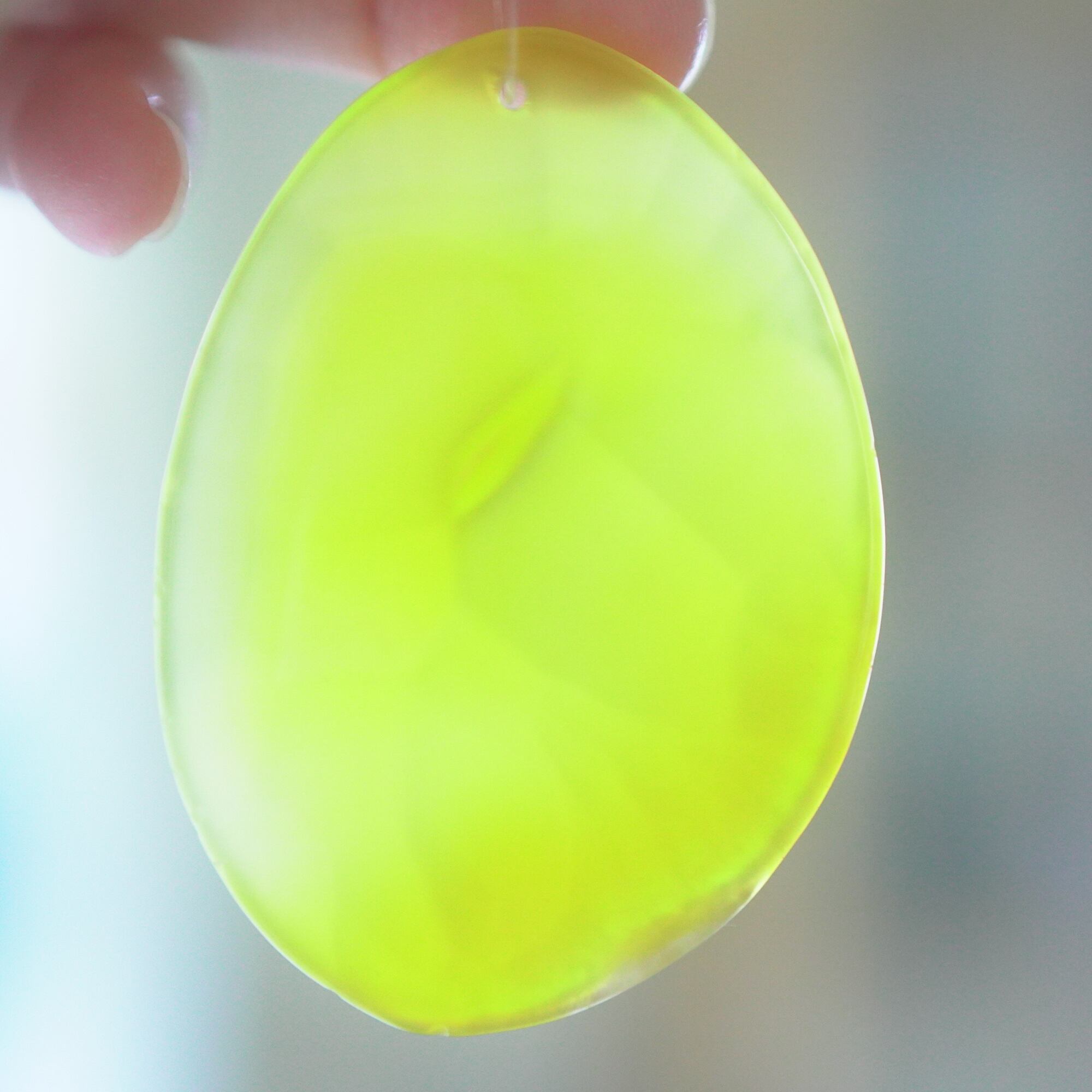 ✧染色の石なので耐光性(光による経年でのカラー変化の耐性)に優れているわけではなくベランダなど一日の中で長時間強い日光に当たるような場所に飾られるのはおすすめしないのですが、陽光に透かした時にだけ真価を発揮する美しさがありますので、是非、時折翳したりして光と一緒にお楽しみいただけたらと思います。特に濃い鮮やかな色など、色変化が気になられる場合は、日光のあまり当たらない場所に飾ってくださいね✧