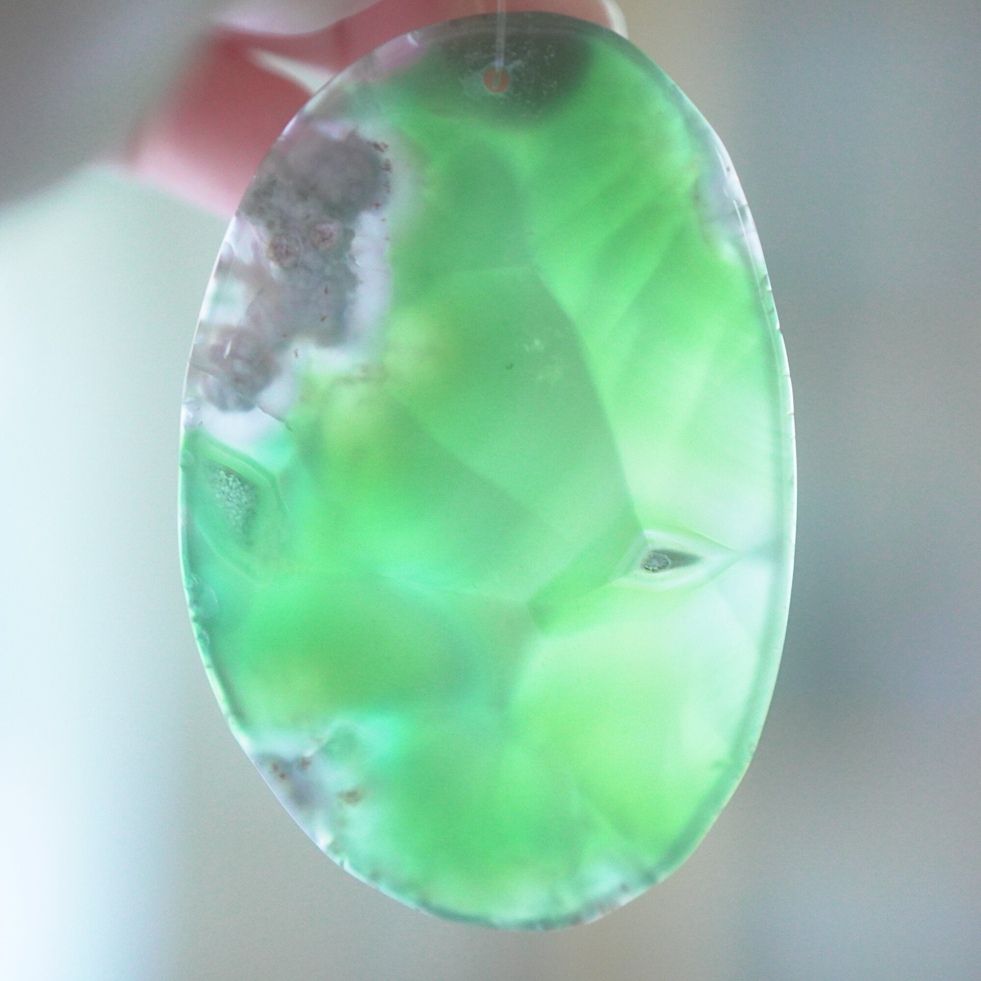 ✧染色の石なので耐光性(光による経年でのカラー変化の耐性)に優れているわけではなくベランダなど一日の中で長時間強い日光に当たるような場所に飾られるのはおすすめしないのですが、陽光に透かした時にだけ真価を発揮する美しさがありますので、是非、時折翳したりして光と一緒にお楽しみいただけたらと思います。特に濃い鮮やかな色など、色変化が気になられる場合は、日光のあまり当たらない場所に飾ってくださいね✧