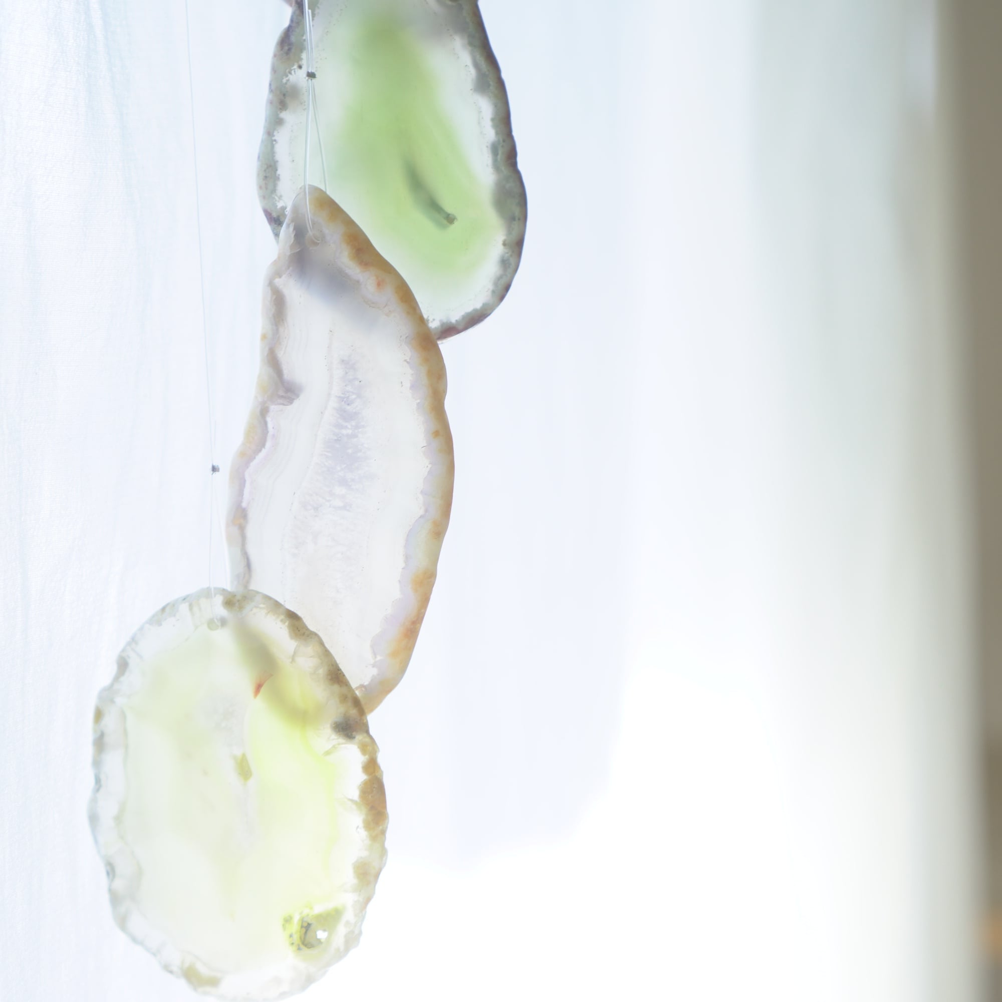 連なるアゲートが風を受けて揺れるとチリンチリン、美しい響きの音が鳴りとても癒されます。