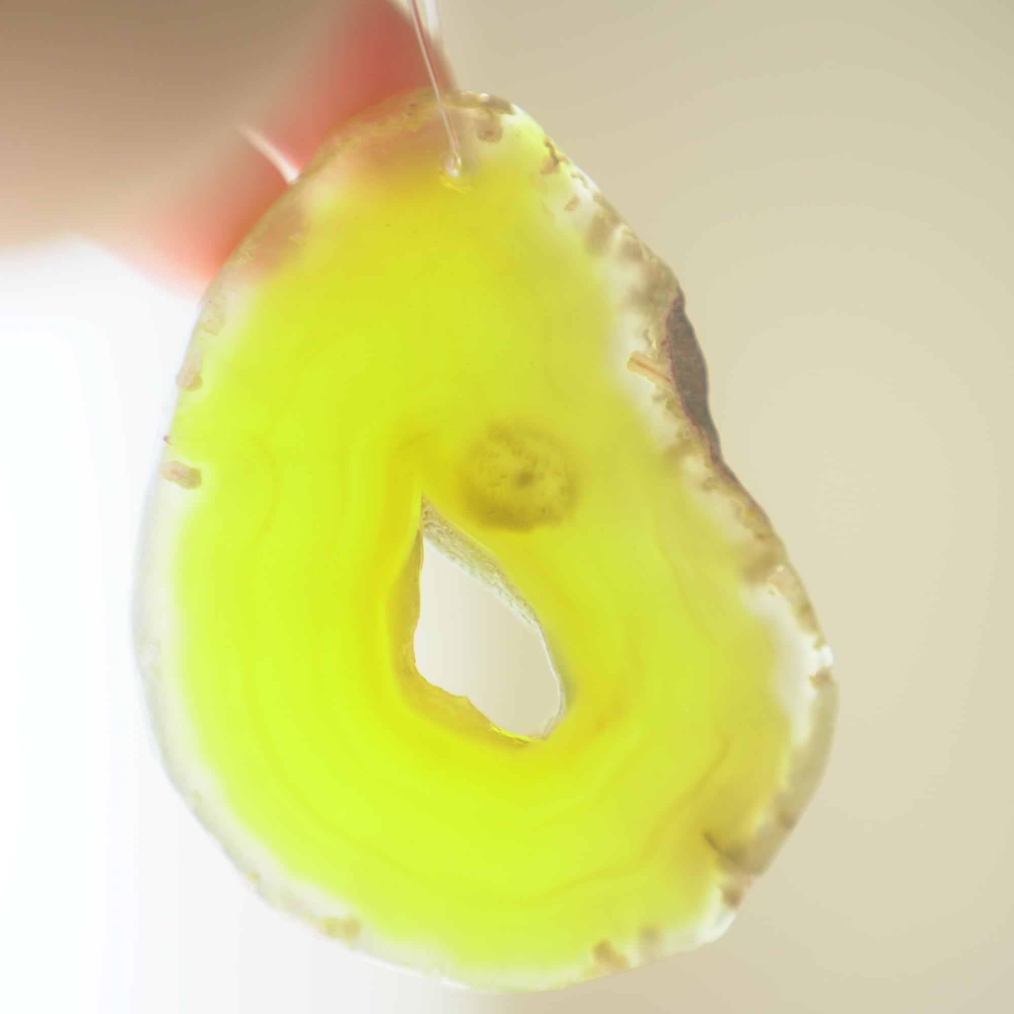 ✧染色の石なので耐光性(光による経年でのカラー変化の耐性)に優れているわけではなくベランダなど一日の中で長時間強い日光に当たるような場所に飾られるのはおすすめしないのですが、陽光に透かした時にだけ真価を発揮する美しさがありますので、是非、時折翳したりして光と一緒にお楽しみいただけたらと思います。特に濃い鮮やかな色など、色変化が気になられる場合は、日光のあまり当たらない場所に飾ってくださいね✧