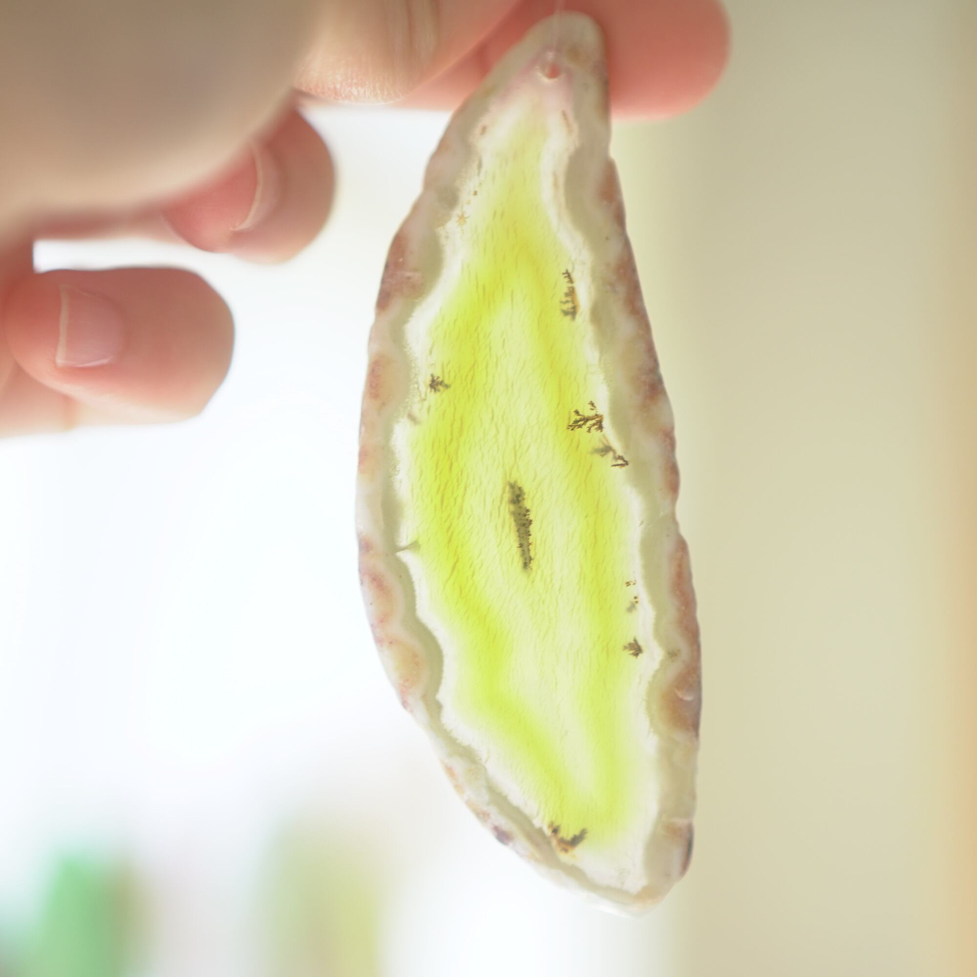 ✧染色の石なので耐光性(光による経年でのカラー変化の耐性)に優れているわけではなくベランダなど一日の中で長時間強い日光に当たるような場所に飾られるのはおすすめしないのですが、陽光に透かした時にだけ真価を発揮する美しさがありますので、是非、時折翳したりして光と一緒にお楽しみいただけたらと思います。特に濃い鮮やかな色など、色変化が気になられる場合は、日光のあまり当たらない場所に飾ってくださいね✧