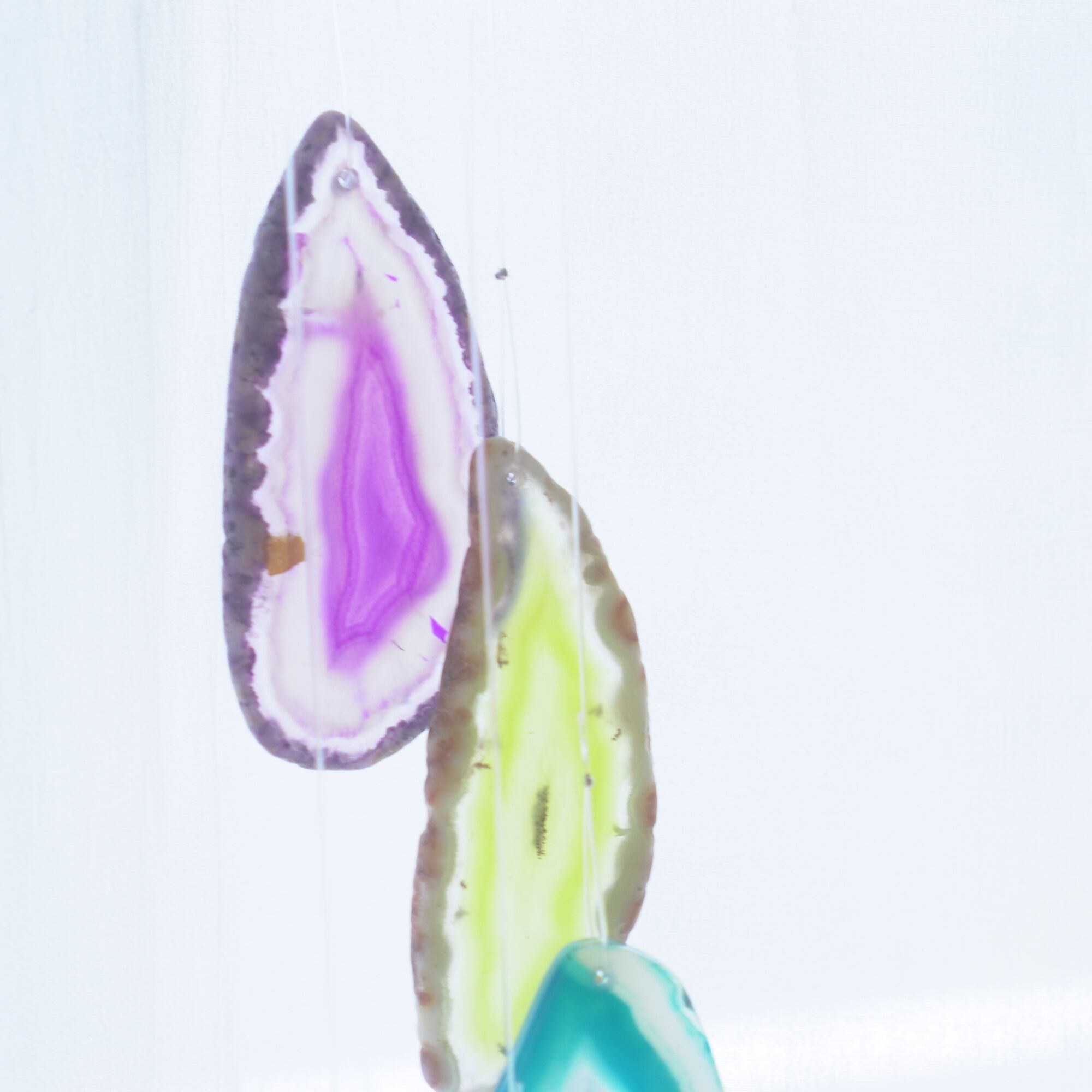 連なるアゲートが風を受けて揺れるとチリンチリン、美しい響きの音が鳴りとても癒されます。
