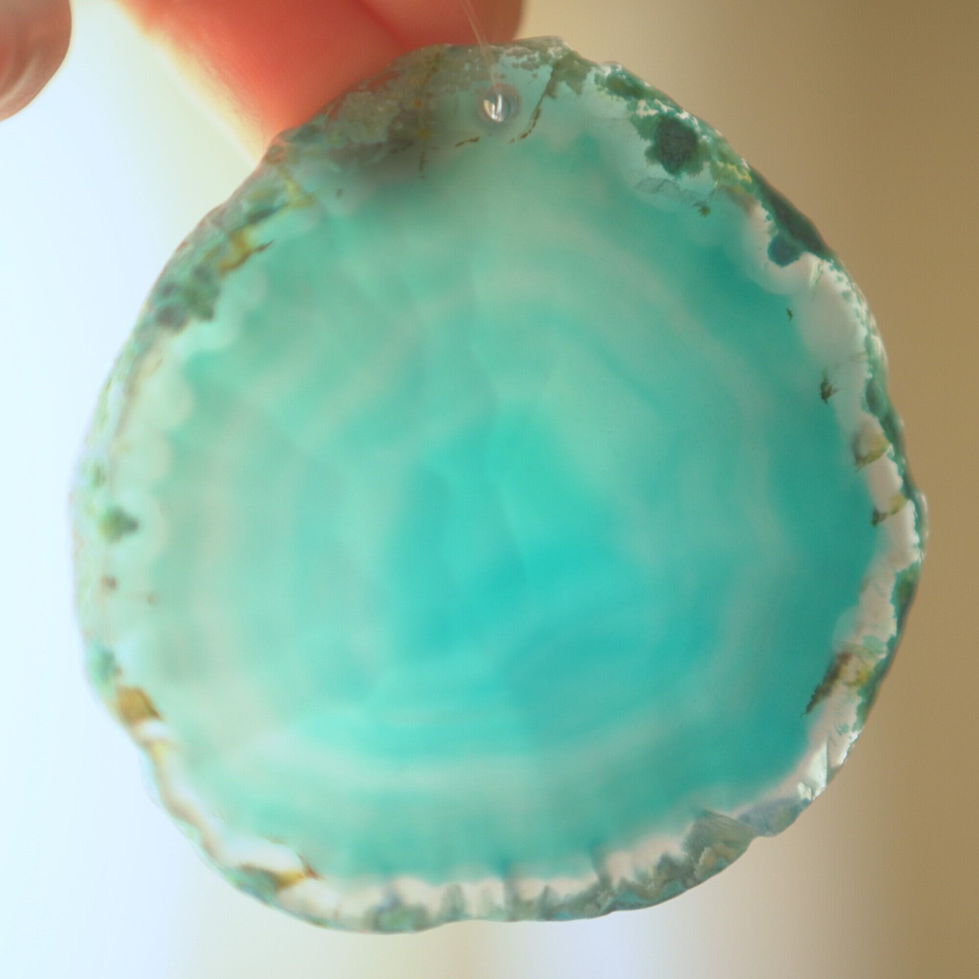 ✧染色の石なので耐光性(光による経年でのカラー変化の耐性)に優れているわけではなくベランダなど一日の中で長時間強い日光に当たるような場所に飾られるのはおすすめしないのですが、陽光に透かした時にだけ真価を発揮する美しさがありますので、是非、時折翳したりして光と一緒にお楽しみいただけたらと思います。特に濃い鮮やかな色など、色変化が気になられる場合は、日光のあまり当たらない場所に飾ってくださいね✧