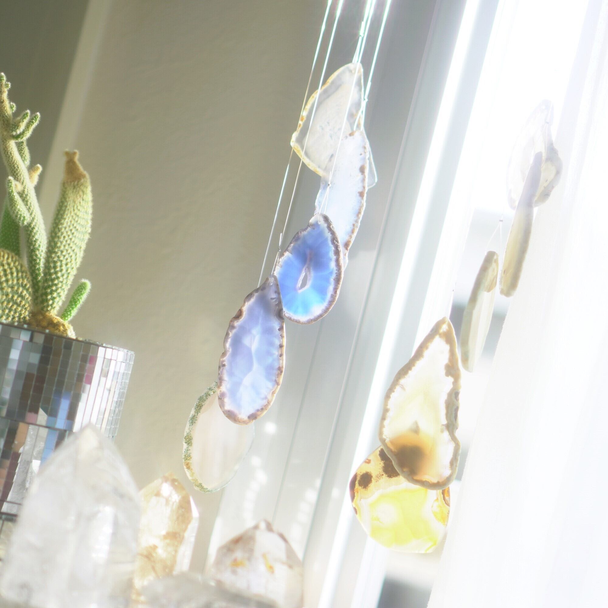 連なるアゲートが風を受けて揺れるとチリンチリン、美しい響きの音が鳴りとても癒されます。