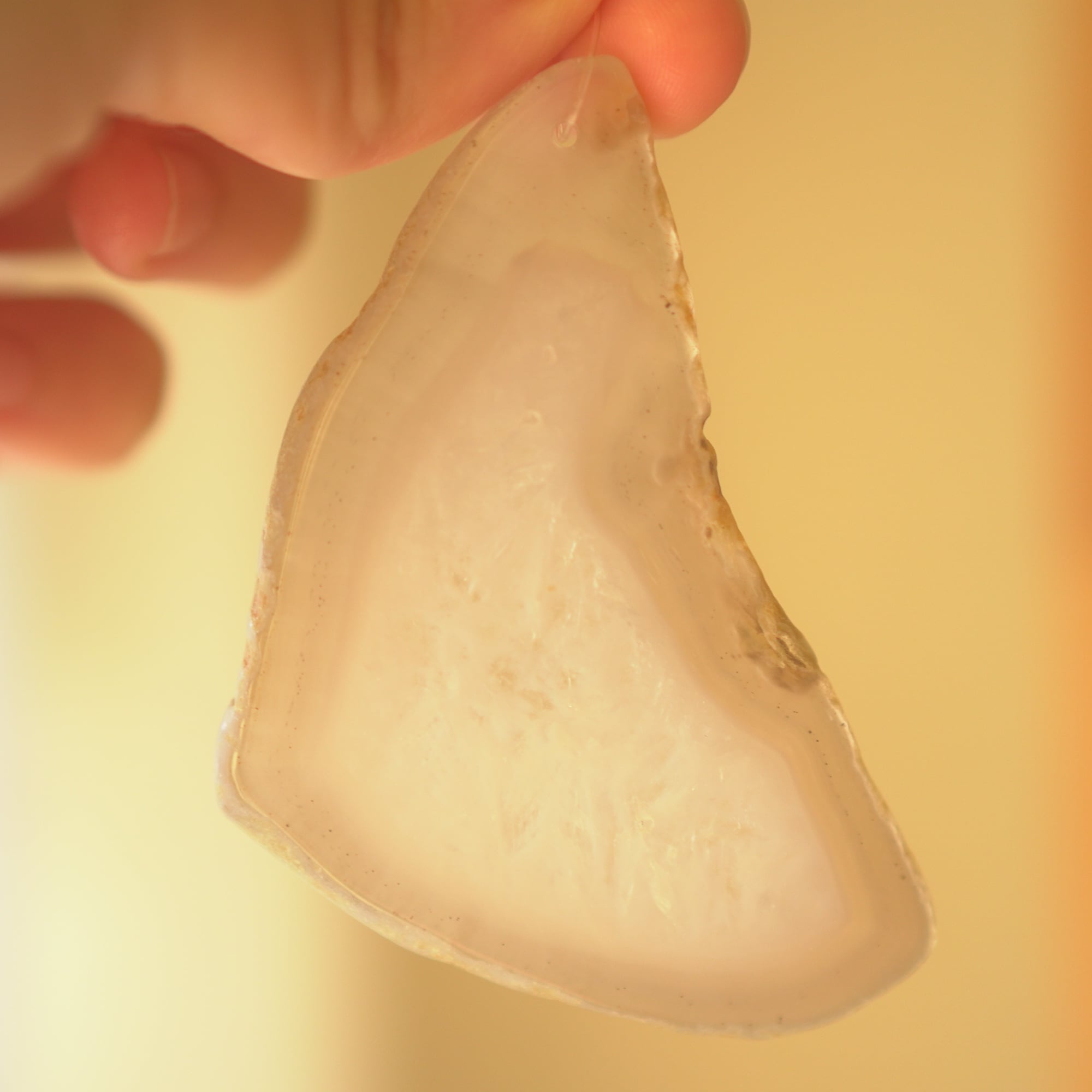 ✧染色の石なので耐光性(光による経年でのカラー変化の耐性)に優れているわけではなくベランダなど一日の中で長時間強い日光に当たるような場所に飾られるのはおすすめしないのですが、陽光に透かした時にだけ真価を発揮する美しさがありますので、是非、時折翳したりして光と一緒にお楽しみいただけたらと思います。特に濃い鮮やかな色など、色変化が気になられる場合は、日光のあまり当たらない場所に飾ってくださいね✧