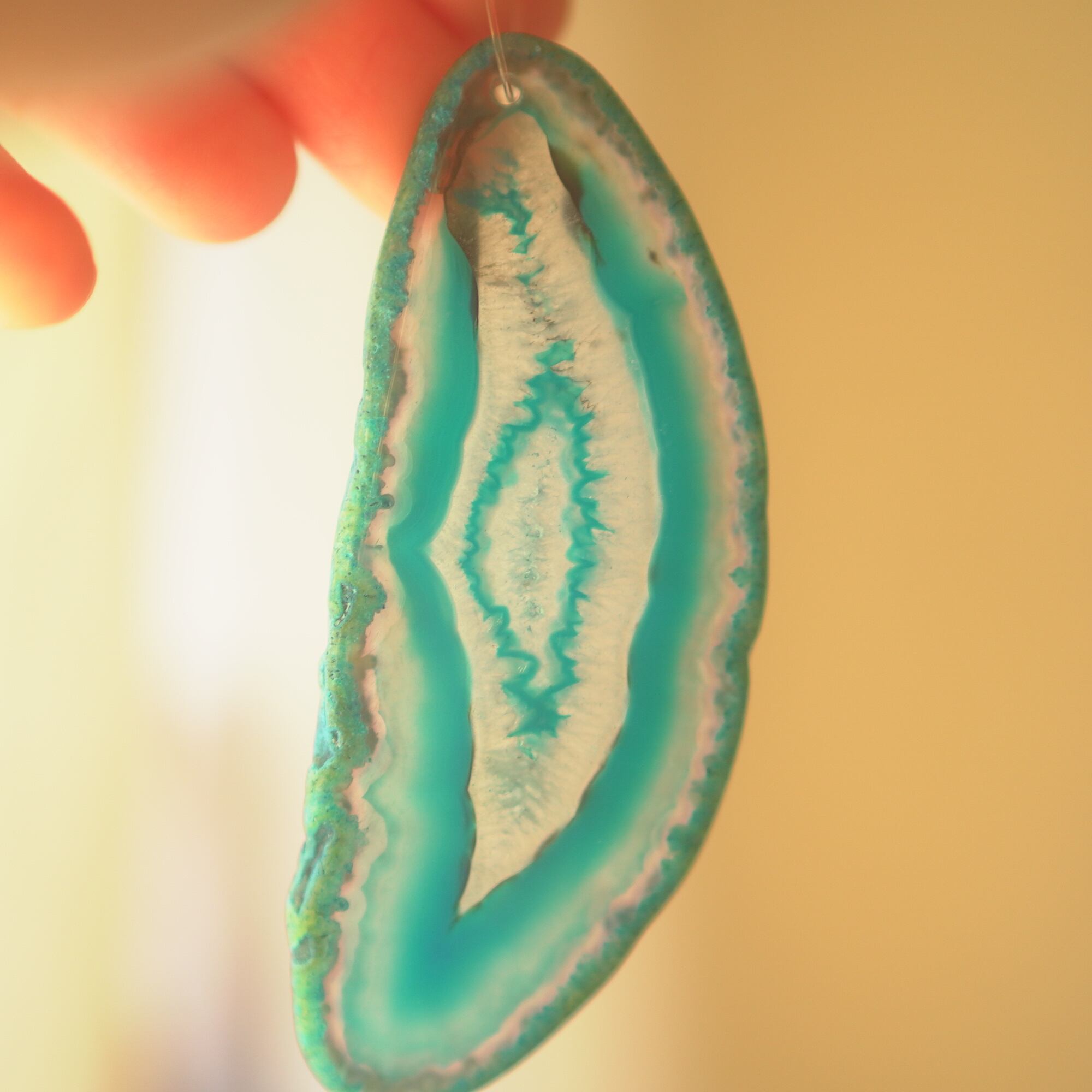 ✧染色の石なので耐光性(光による経年でのカラー変化の耐性)に優れているわけではなくベランダなど一日の中で長時間強い日光に当たるような場所に飾られるのはおすすめしないのですが、陽光に透かした時にだけ真価を発揮する美しさがありますので、是非、時折翳したりして光と一緒にお楽しみいただけたらと思います。特に濃い鮮やかな色など、色変化が気になられる場合は、日光のあまり当たらない場所に飾ってくださいね✧