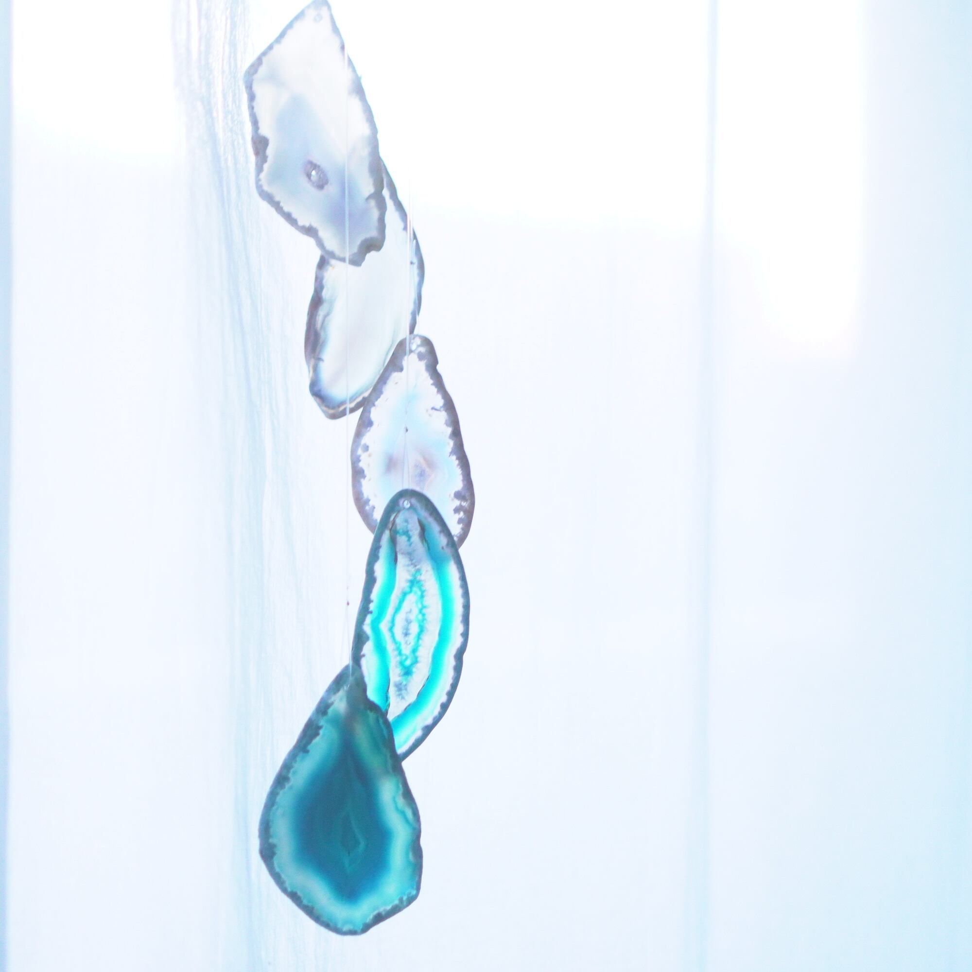 連なるアゲートが風を受けて揺れるとチリンチリン、美しい響きの音が鳴りとても癒されます。