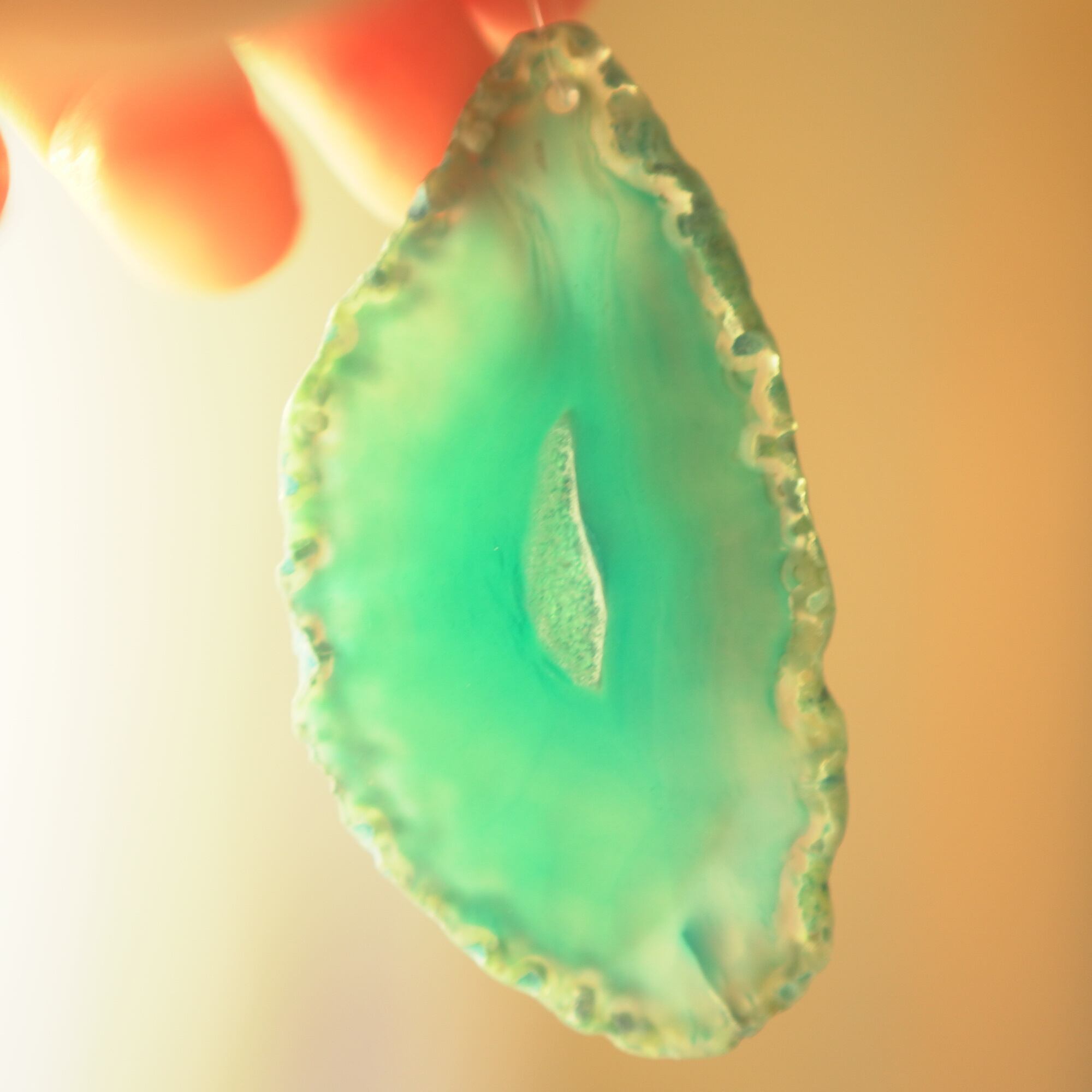 ✧染色の石なので耐光性(光による経年でのカラー変化の耐性)に優れているわけではなくベランダなど一日の中で長時間強い日光に当たるような場所に飾られるのはおすすめしないのですが、陽光に透かした時にだけ真価を発揮する美しさがありますので、是非、時折翳したりして光と一緒にお楽しみいただけたらと思います。特に濃い鮮やかな色など、色変化が気になられる場合は、日光のあまり当たらない場所に飾ってくださいね✧
