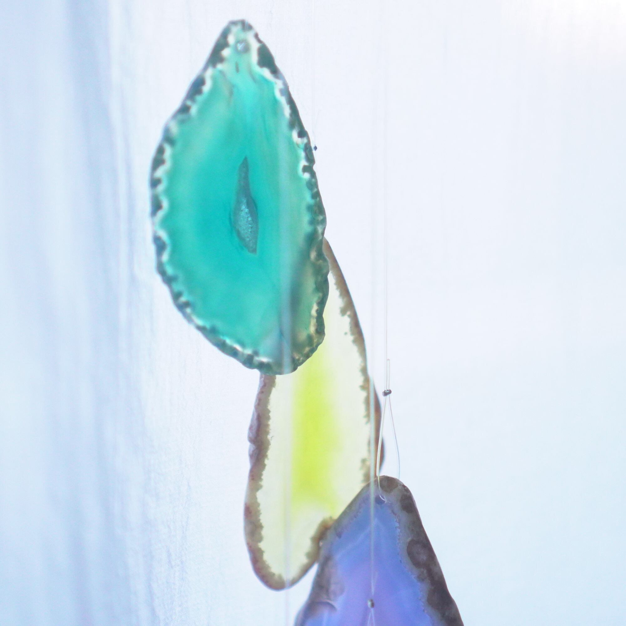 連なるアゲートが風を受けて揺れるとチリンチリン、美しい響きの音が鳴りとても癒されます。
