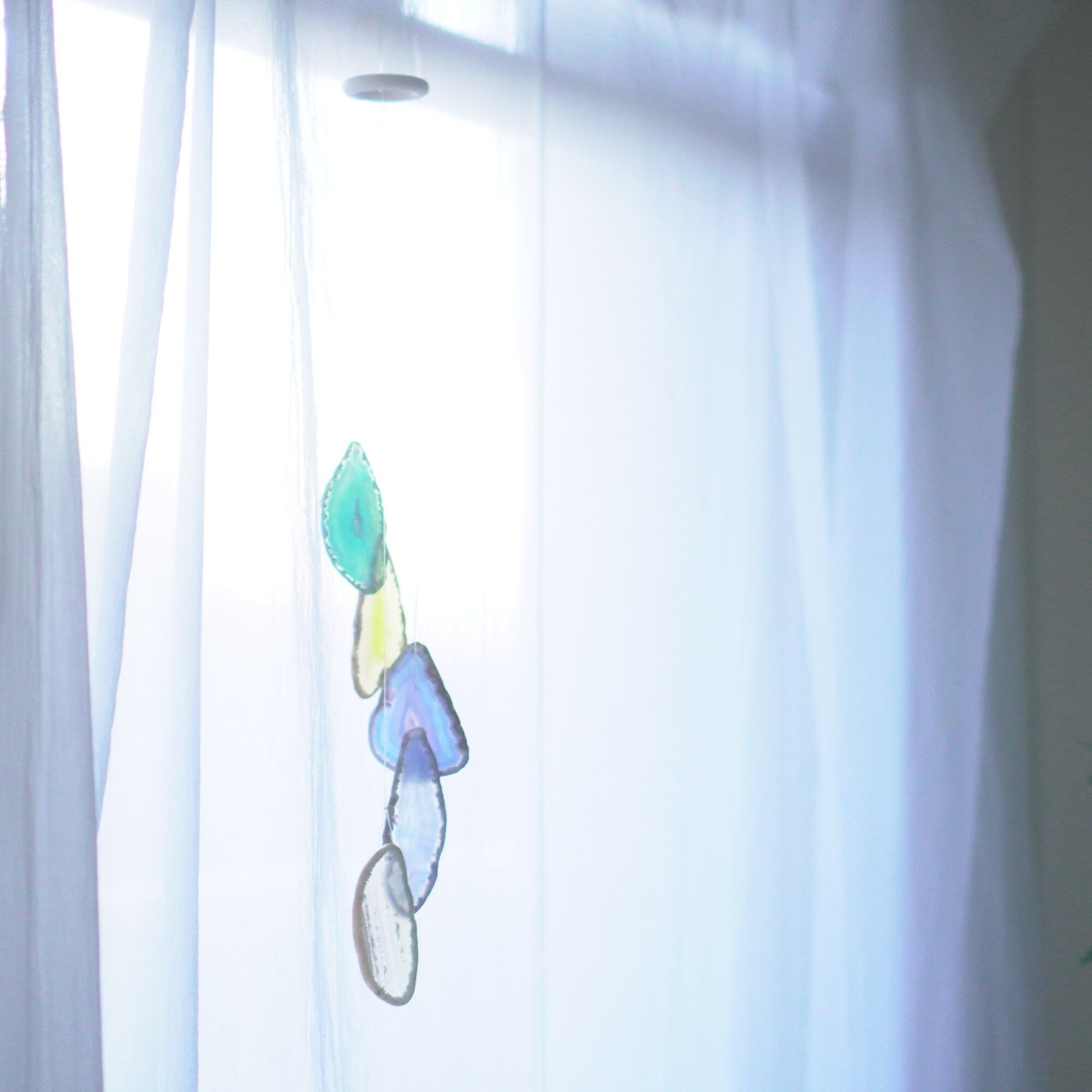 そしてカーテン越しではなく直射日光を当てた際のサンキャッチャーとしてのチャイムも、ピカピカとした美しい光をお部屋の中に運んでくれます。