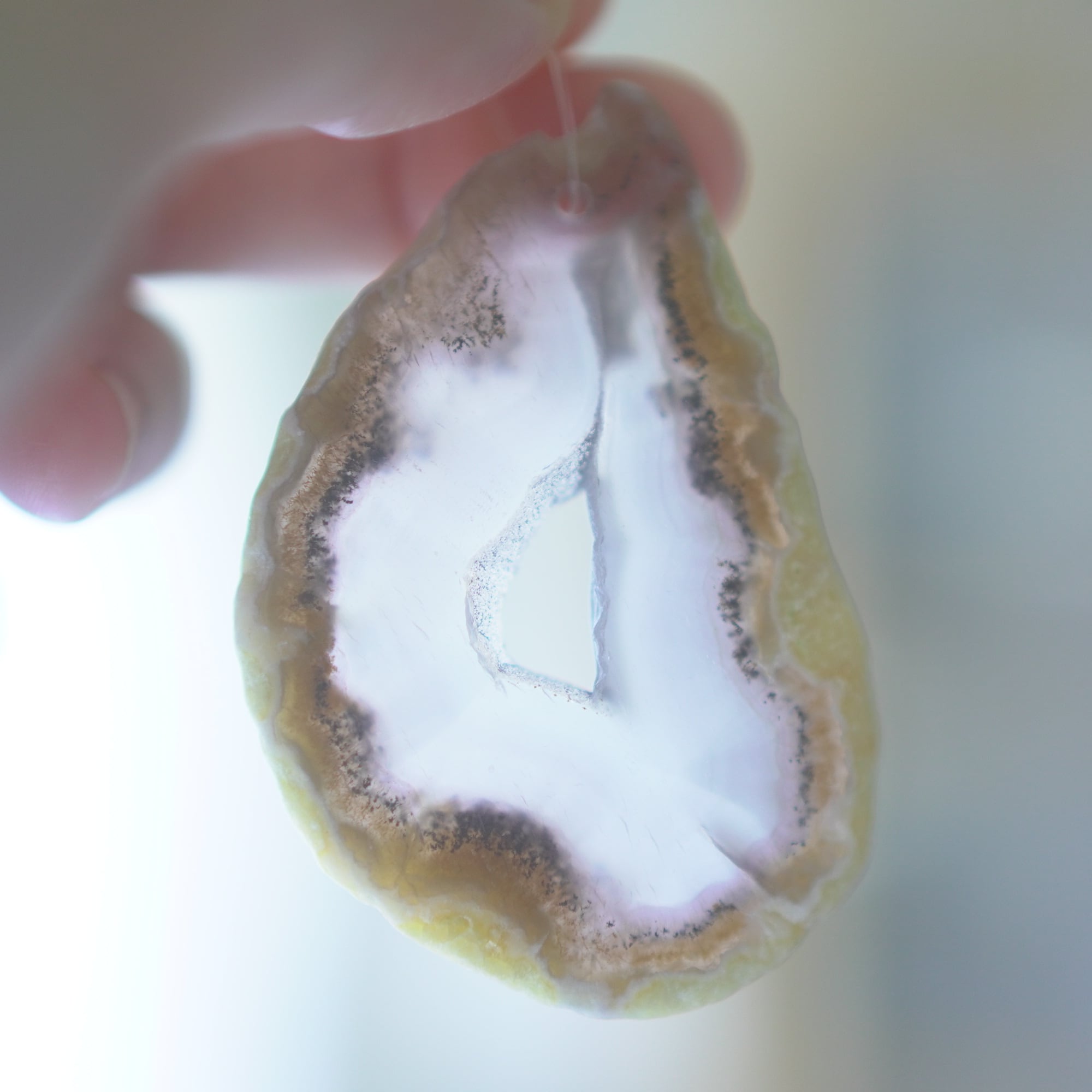 Agate Slice , Natural Wood , Nylon Cord , Metal