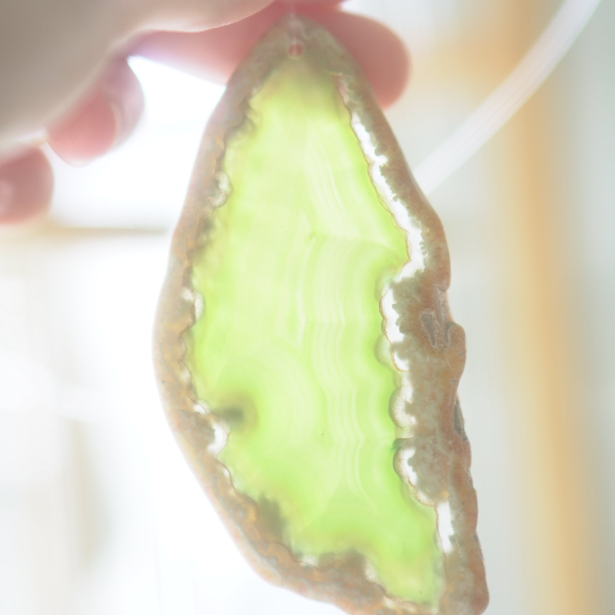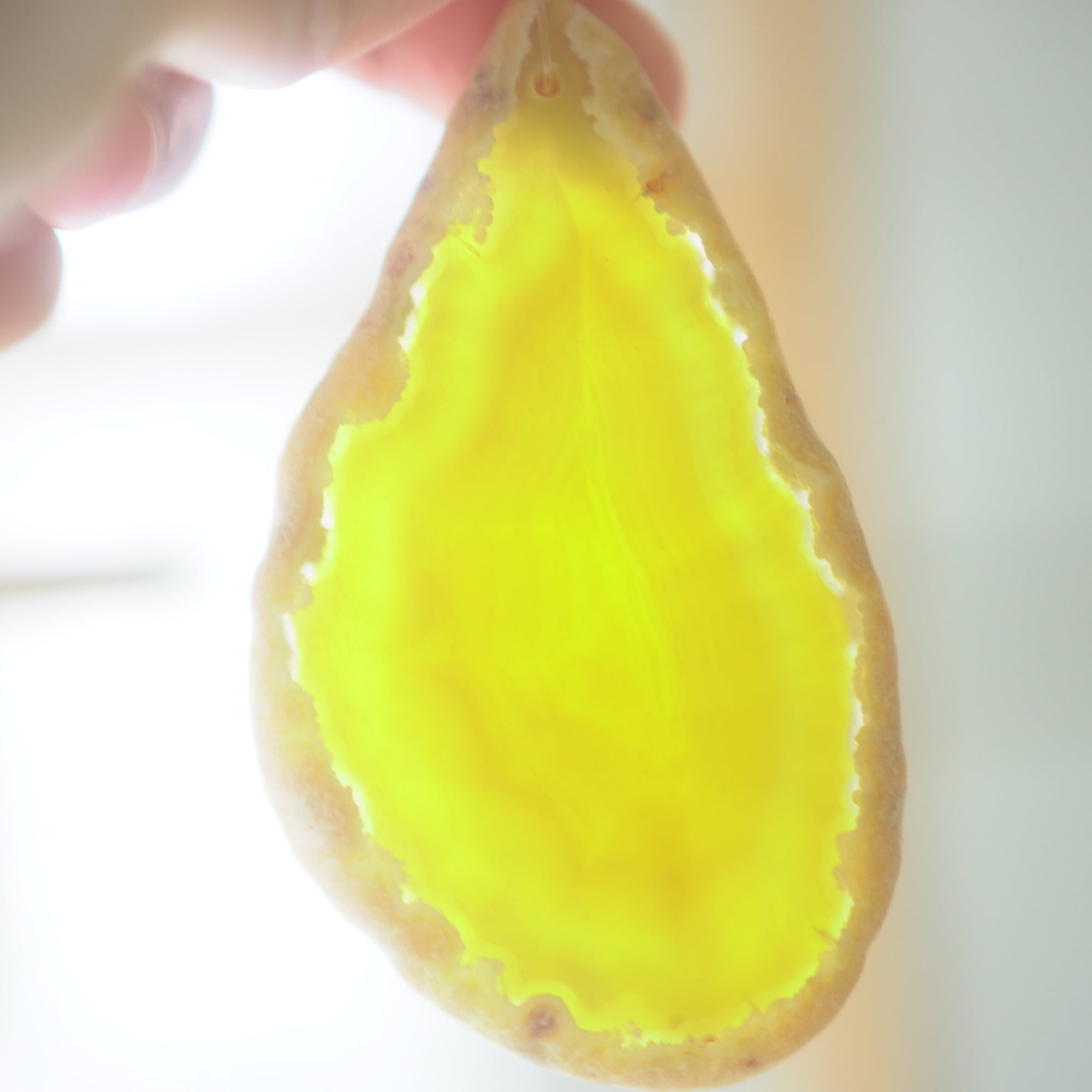 ✧染色の石なので耐光性(光による経年でのカラー変化の耐性)に優れているわけではなくベランダなど一日の中で長時間強い日光に当たるような場所に飾られるのはおすすめしないのですが、陽光に透かした時にだけ真価を発揮する美しさがありますので、是非、時折翳したりして光と一緒にお楽しみいただけたらと思います。特に濃い鮮やかな色など、色変化が気になられる場合は、日光のあまり当たらない場所に飾ってくださいね✧
