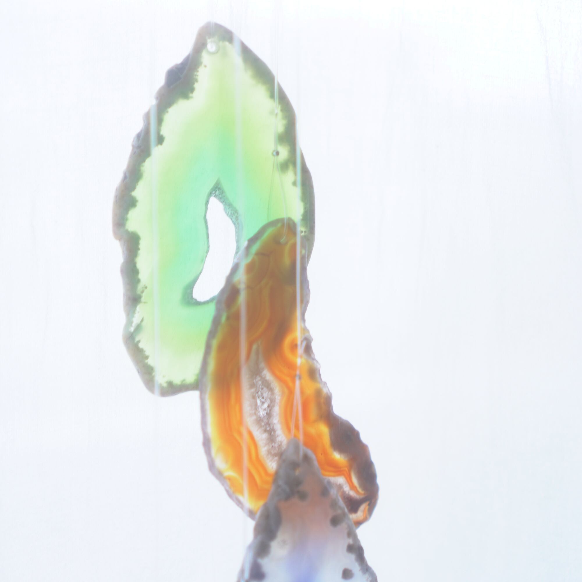 連なるアゲートが風を受けて揺れるとチリンチリン、美しい響きの音が鳴りとても癒されます。