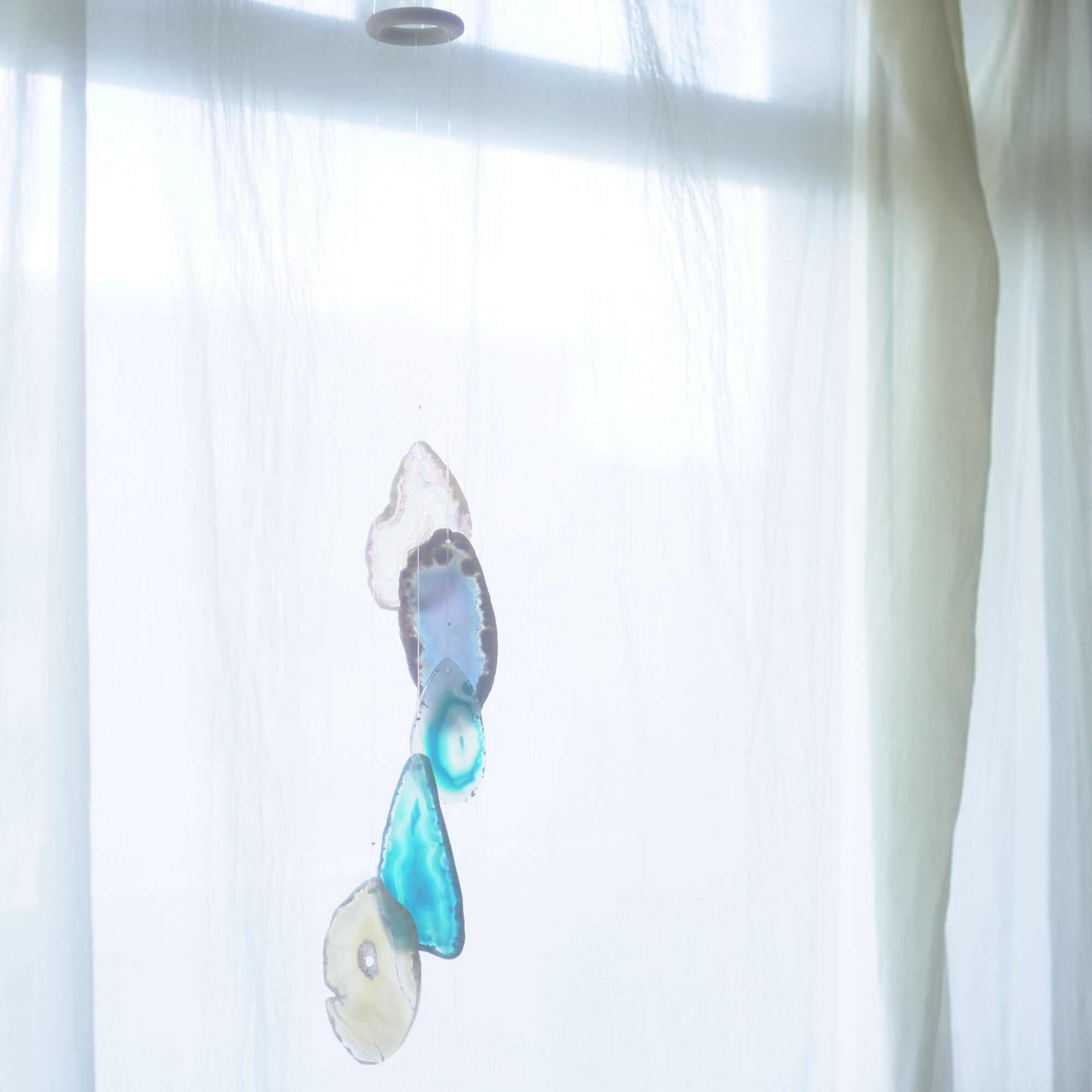 連なるアゲートが風を受けて揺れるとチリンチリン、美しい響きの音が鳴りとても癒されます。
