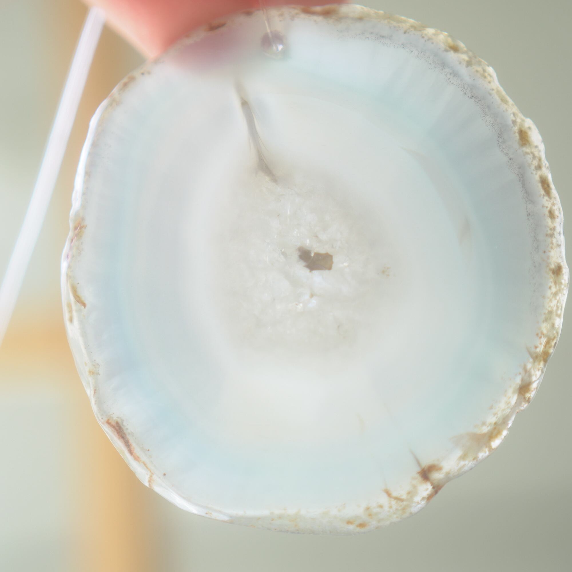 ✧染色の石なので耐光性(光による経年でのカラー変化の耐性)に優れているわけではなくベランダなど一日の中で長時間強い日光に当たるような場所に飾られるのはおすすめしないのですが、陽光に透かした時にだけ真価を発揮する美しさがありますので、是非、時折翳したりして光と一緒にお楽しみいただけたらと思います。特に濃い鮮やかな色など、色変化が気になられる場合は、日光のあまり当たらない場所に飾ってくださいね✧