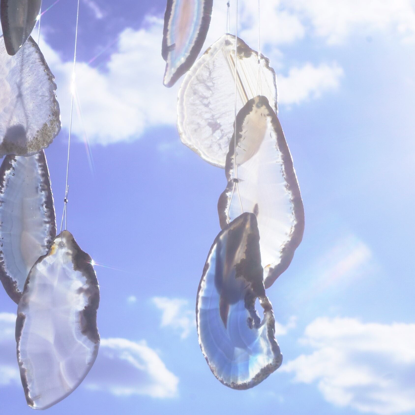 連なるアゲートが風を受けて揺れるとチリンチリン、美しい響きの音が鳴りとても癒されます。