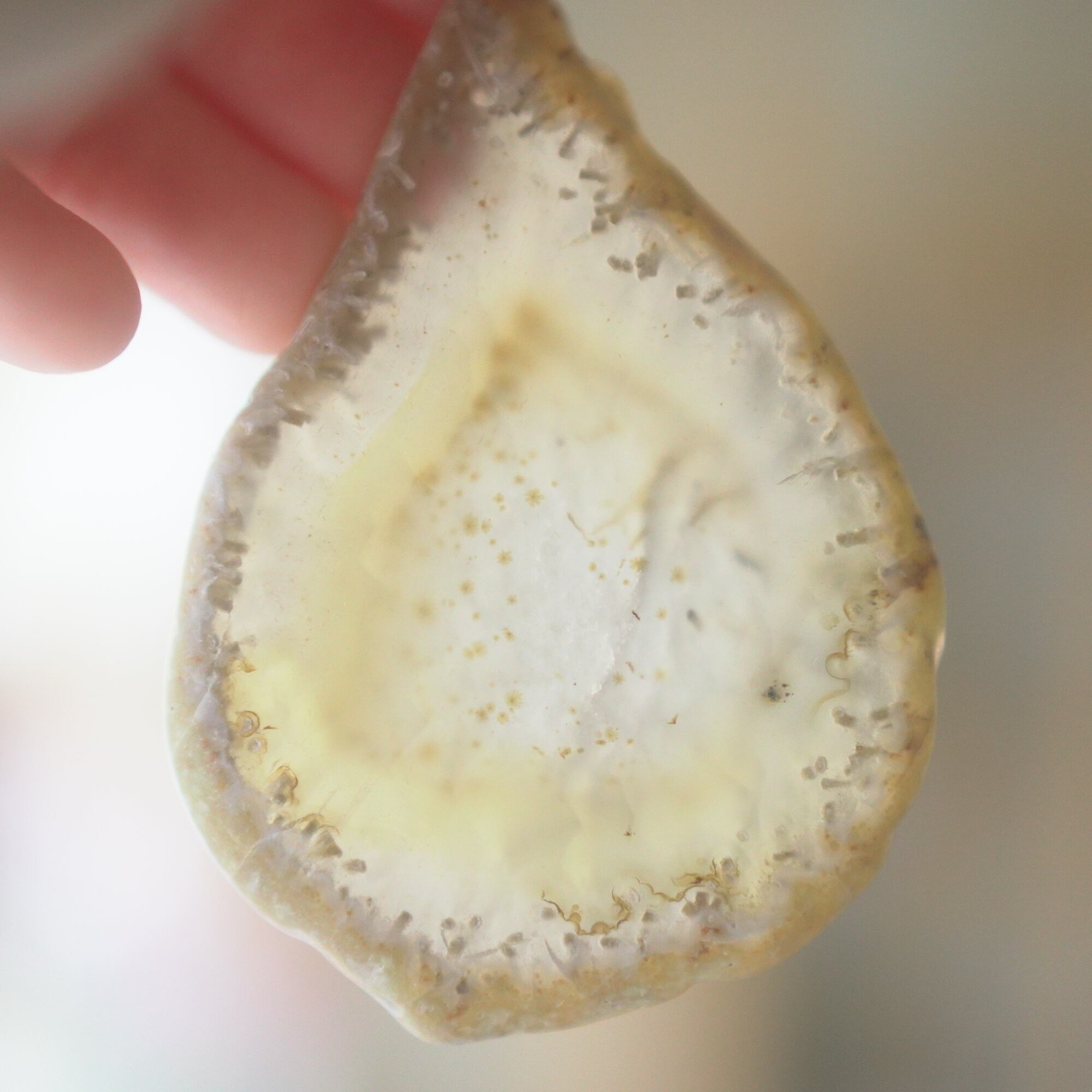 ✧染色の石なので耐光性(光による経年でのカラー変化の耐性)に優れているわけではなくベランダなど一日の中で長時間強い日光に当たるような場所に飾られるのはおすすめしないのですが、陽光に透かした時にだけ真価を発揮する美しさがありますので、是非、時折翳したりして光と一緒にお楽しみいただけたらと思います。特に濃い鮮やかな色など、色変化が気になられる場合は、日光のあまり当たらない場所に飾ってくださいね✧