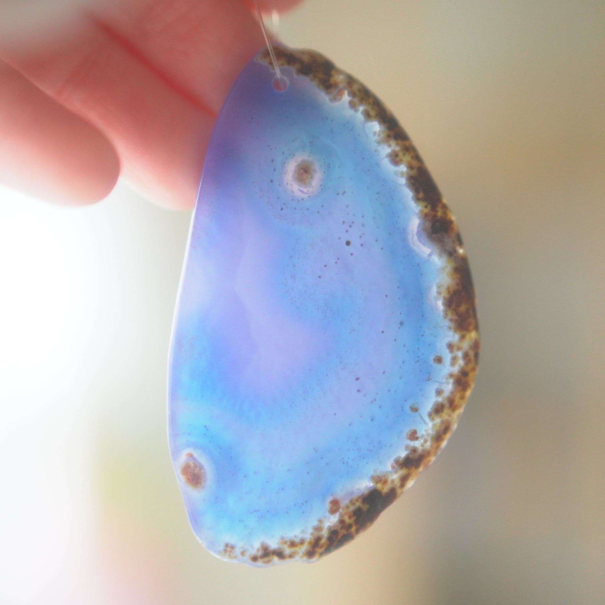 ✧染色の石なので耐光性(光による経年でのカラー変化の耐性)に優れているわけではなくベランダなど一日の中で長時間強い日光に当たるような場所に飾られるのはおすすめしないのですが、陽光に透かした時にだけ真価を発揮する美しさがありますので、是非、時折翳したりして光と一緒にお楽しみいただけたらと思います。特に濃い鮮やかな色など、色変化が気になられる場合は、日光のあまり当たらない場所に飾ってくださいね✧