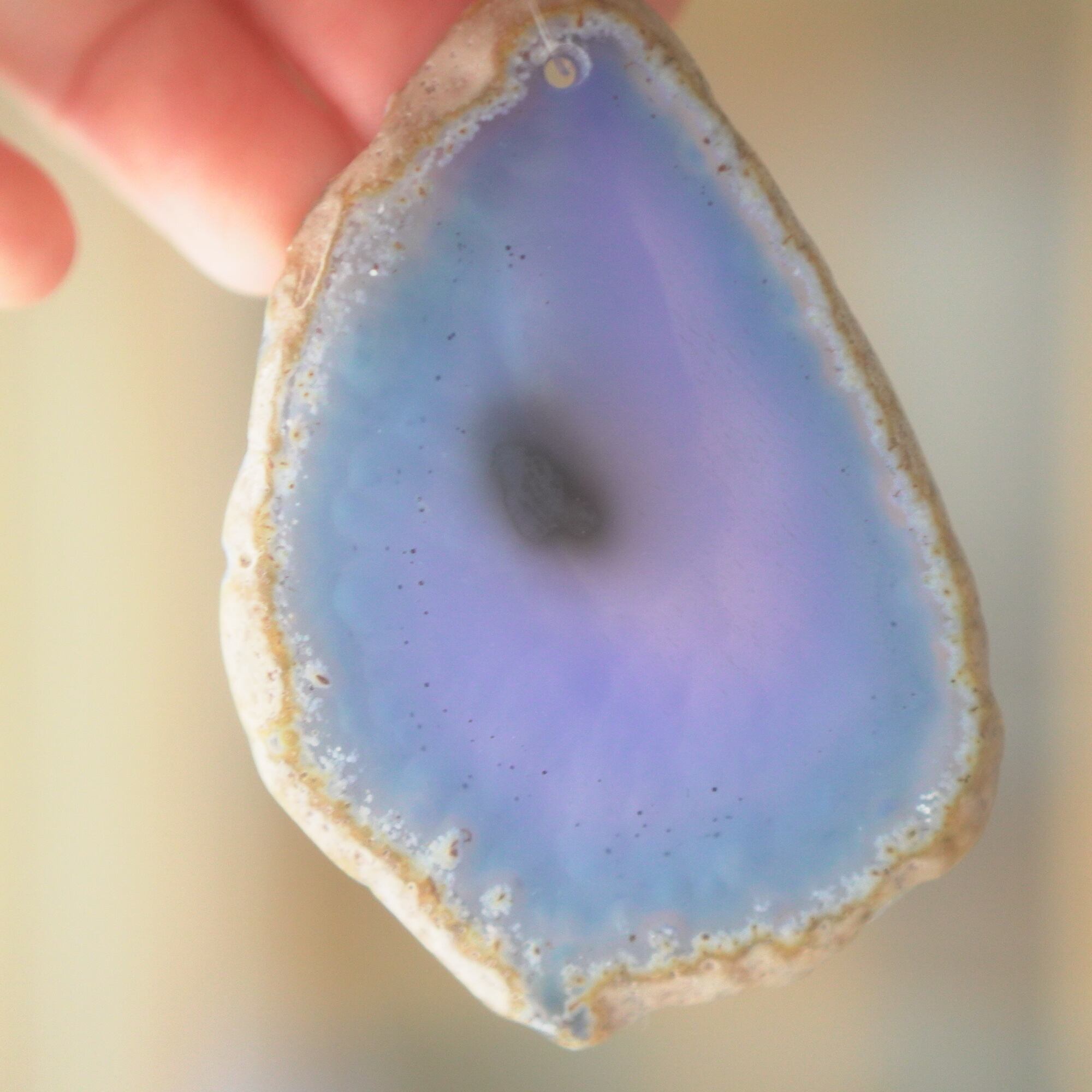 重ねる石同士の側面の加工状態によっても良い音が鳴ったり鳴らなかったり、石の見た目だけで組み合わせを決められないことが難しいポイントでもあるのですが、そんな中、たくさんの石の中から選ばれた5枚のスライスアゲートから出来上がったチャイムたちは、どこか悠々自適に空を泳ぐ妖精のようでもあり、それぞれの音を楽しそうに奏でてくれます。