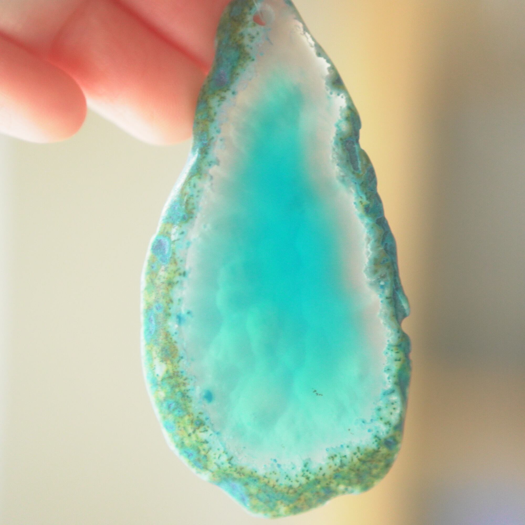 ✧染色の石なので耐光性(光による経年でのカラー変化の耐性)に優れているわけではなくベランダなど一日の中で長時間強い日光に当たるような場所に飾られるのはおすすめしないのですが、陽光に透かした時にだけ真価を発揮する美しさがありますので、是非、時折翳したりして光と一緒にお楽しみいただけたらと思います。特に濃い鮮やかな色など、色変化が気になられる場合は、日光のあまり当たらない場所に飾ってくださいね✧