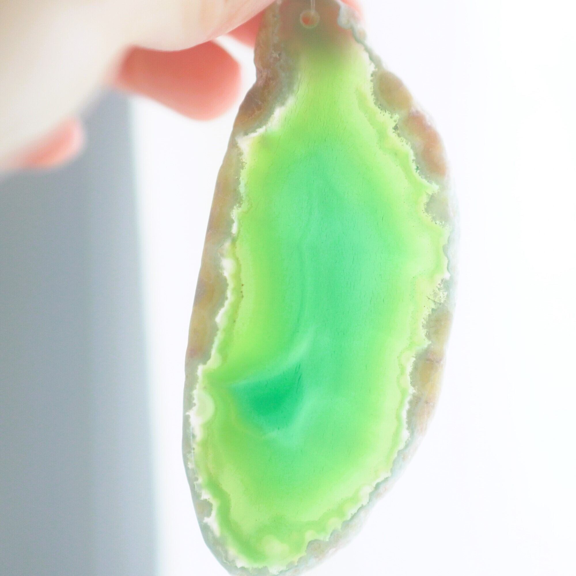 ✧染色の石なので耐光性(光による経年でのカラー変化の耐性)に優れているわけではなくベランダなど一日の中で長時間強い日光に当たるような場所に飾られるのはおすすめしないのですが、陽光に透かした時にだけ真価を発揮する美しさがありますので、是非、時折翳したりして光と一緒にお楽しみいただけたらと思います。特に濃い鮮やかな色など、色変化が気になられる場合は、日光のあまり当たらない場所に飾ってくださいね✧