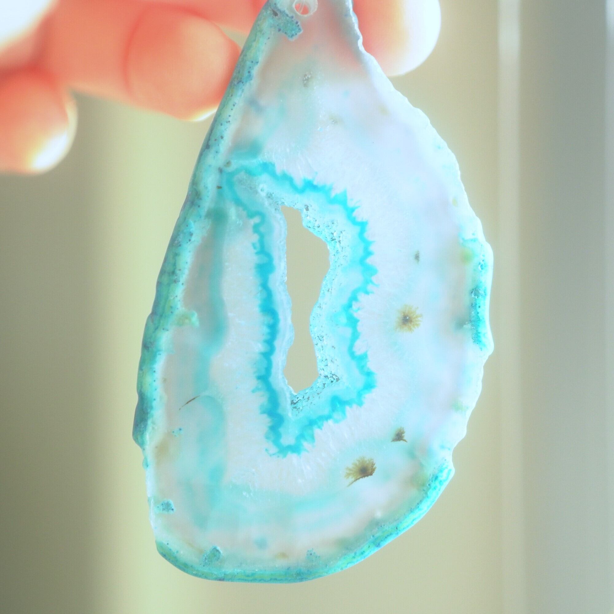 ✧染色の石なので耐光性(光による経年でのカラー変化の耐性)に優れているわけではなくベランダなど一日の中で長時間強い日光に当たるような場所に飾られるのはおすすめしないのですが、陽光に透かした時にだけ真価を発揮する美しさがありますので、是非、時折翳したりして光と一緒にお楽しみいただけたらと思います。特に濃い鮮やかな色など、色変化が気になられる場合は、日光のあまり当たらない場所に飾ってくださいね✧