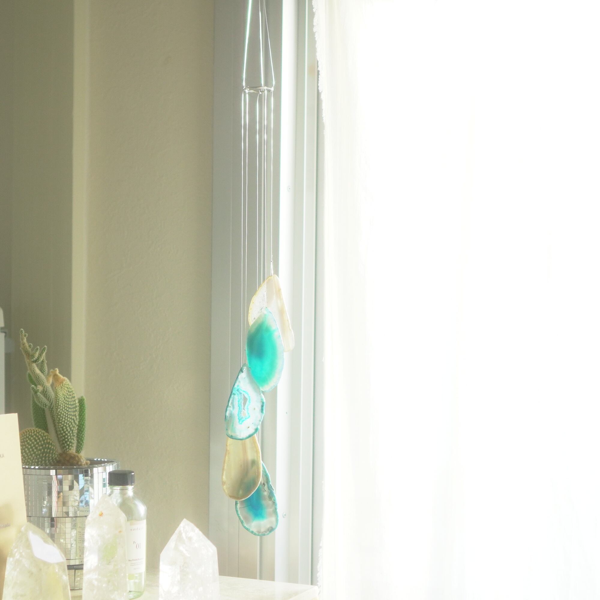 そしてカーテン越しではなく直射日光を当てた際のサンキャッチャーとしてのチャイムも、ピカピカとした美しい光をお部屋の中に運んでくれます。