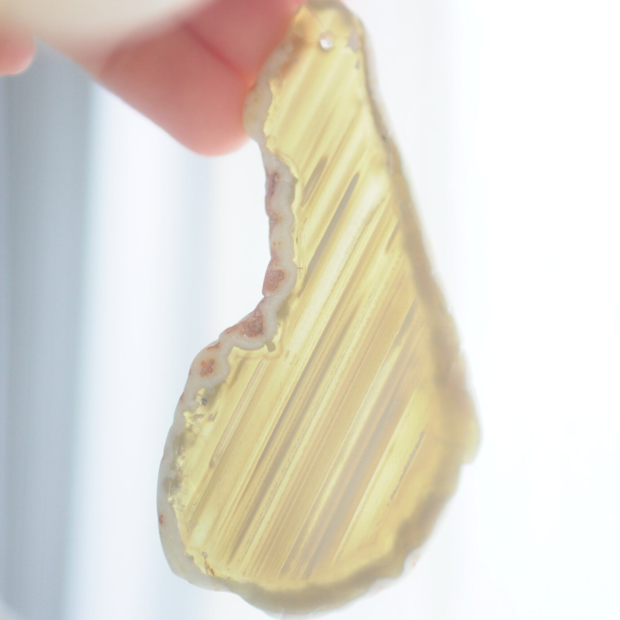✧染色の石なので耐光性(光による経年でのカラー変化の耐性)に優れているわけではなくベランダなど一日の中で長時間強い日光に当たるような場所に飾られるのはおすすめしないのですが、陽光に透かした時にだけ真価を発揮する美しさがありますので、是非、時折翳したりして光と一緒にお楽しみいただけたらと思います。特に濃い鮮やかな色など、色変化が気になられる場合は、日光のあまり当たらない場所に飾ってくださいね✧