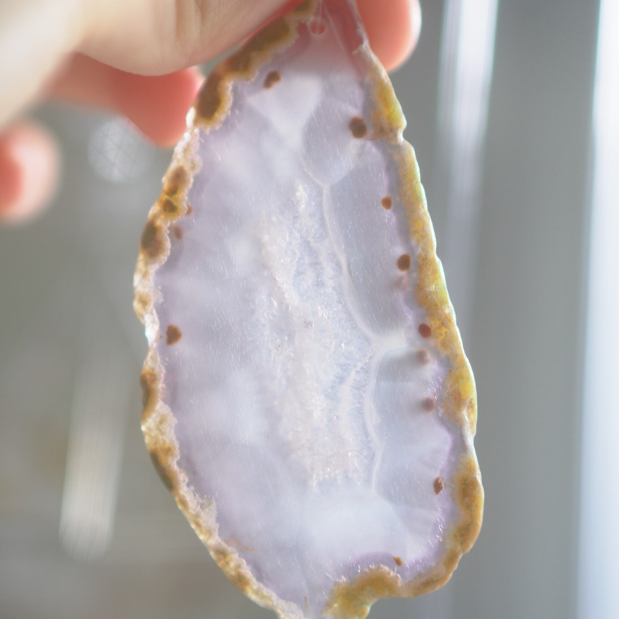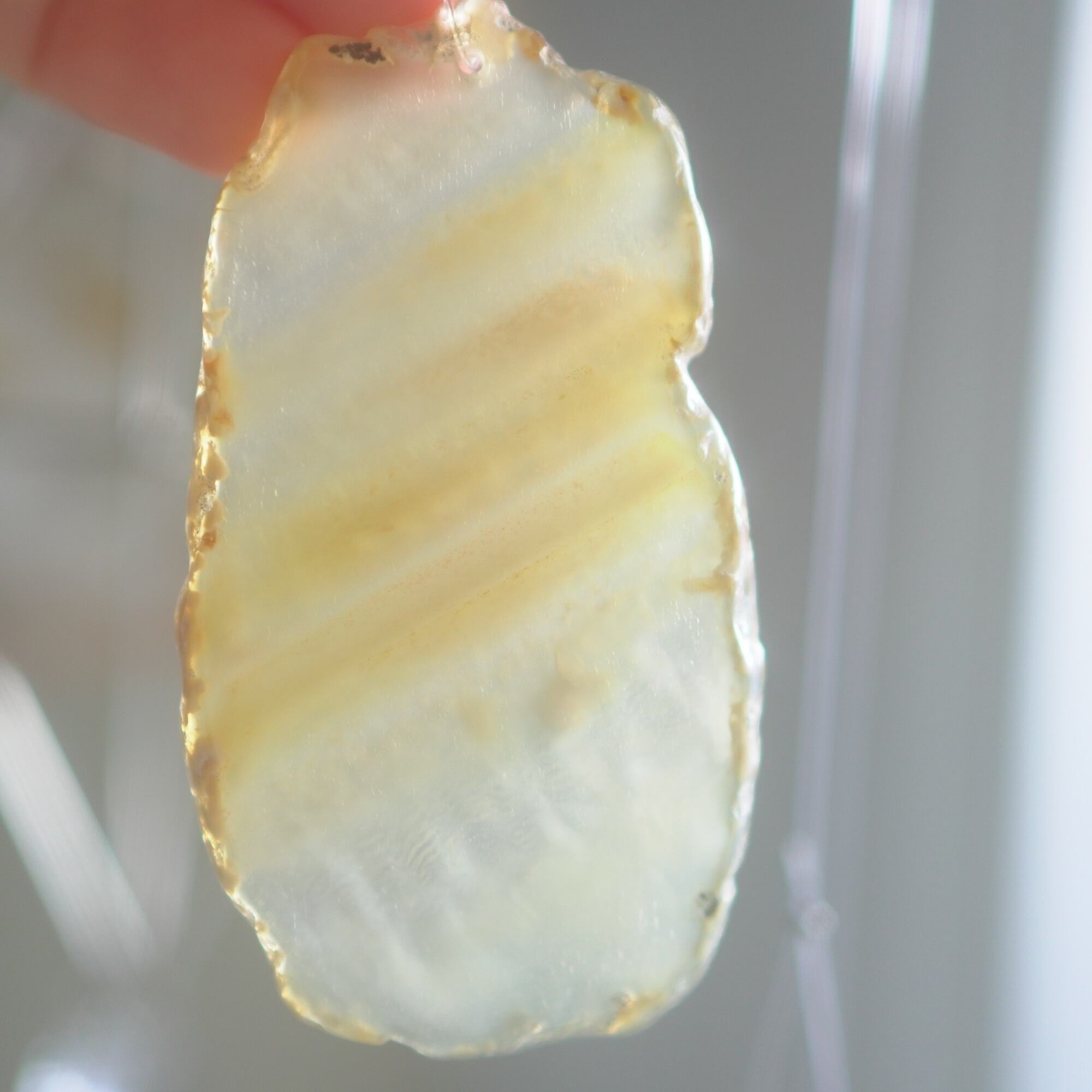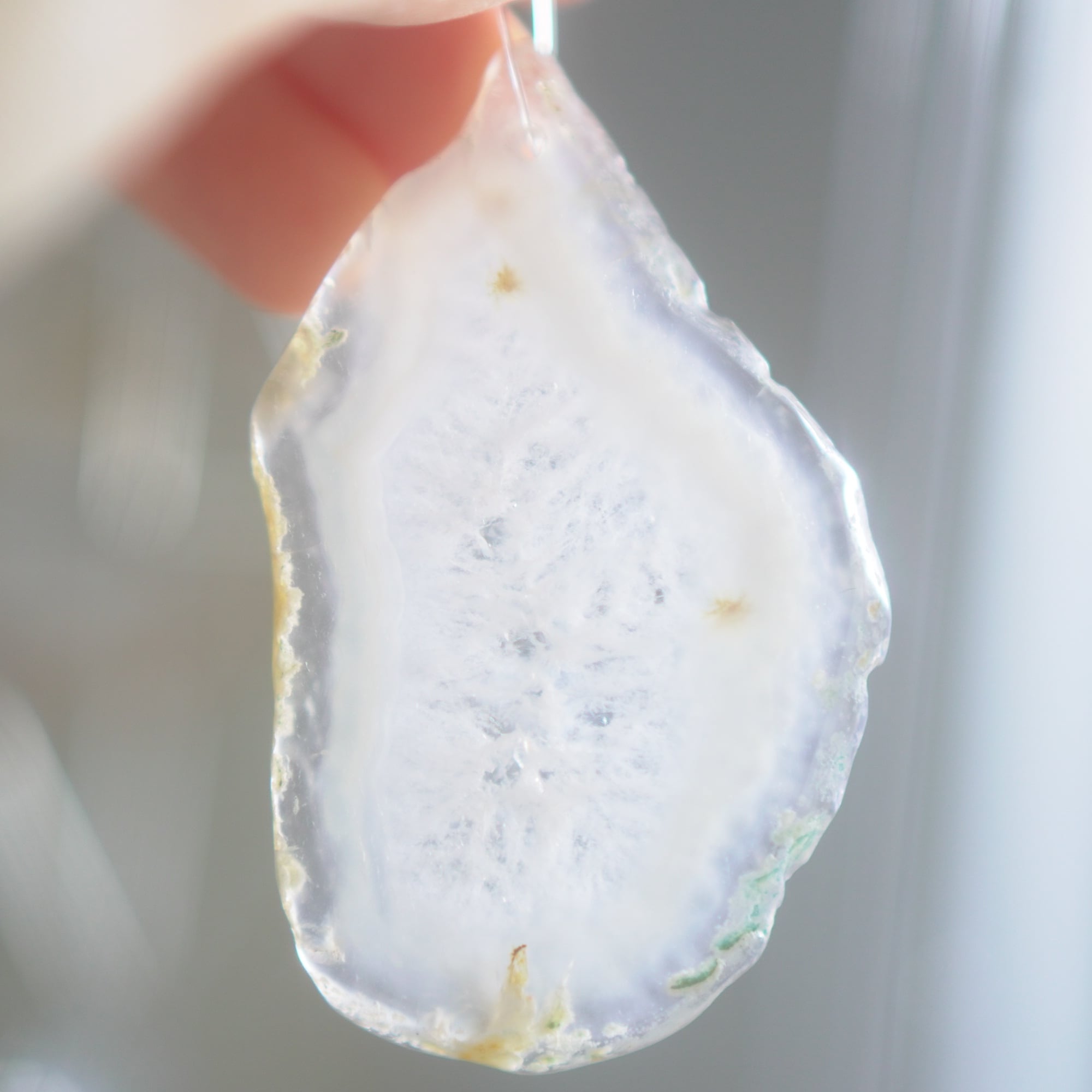 ✧染色の石なので耐光性(光による経年でのカラー変化の耐性)に優れているわけではなくベランダなど一日の中で長時間強い日光に当たるような場所に飾られるのはおすすめしないのですが、陽光に透かした時にだけ真価を発揮する美しさがありますので、是非、時折翳したりして光と一緒にお楽しみいただけたらと思います。特に濃い鮮やかな色など、色変化が気になられる場合は、日光のあまり当たらない場所に飾ってくださいね✧
