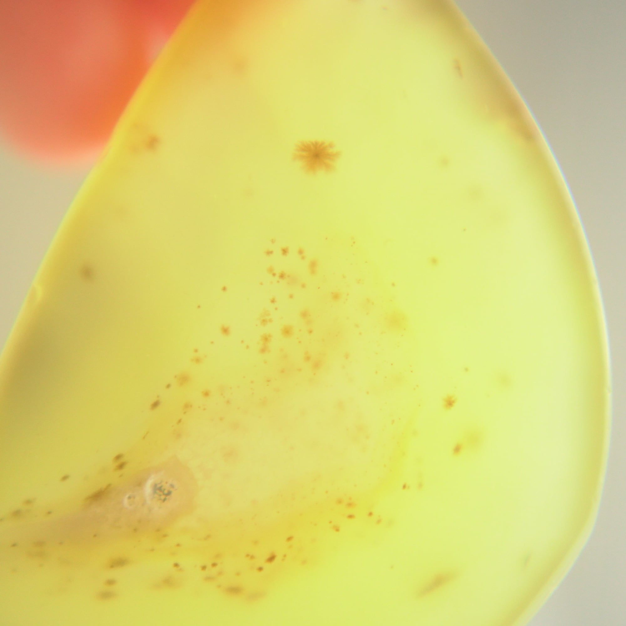 ✧染色の石なので耐光性(光による経年でのカラー変化の耐性)に優れているわけではなくベランダなど一日の中で長時間強い日光に当たるような場所に飾られるのはおすすめしないのですが、陽光に透かした時にだけ真価を発揮する美しさがありますので、是非、時折翳したりして光と一緒にお楽しみいただけたらと思います。特に濃い鮮やかな色など、色変化が気になられる場合は、日光のあまり当たらない場所に飾ってくださいね✧
