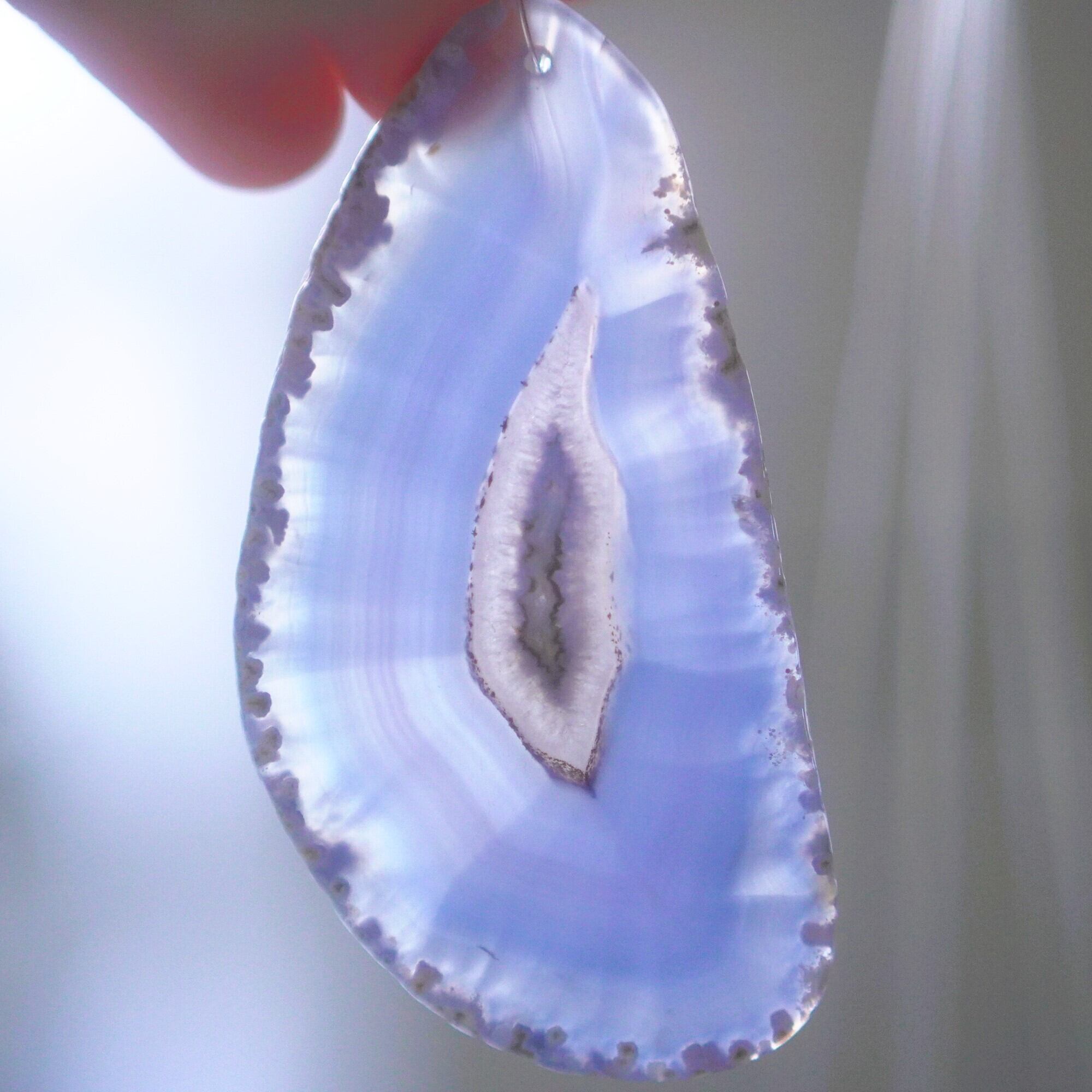 重ねる石同士の側面の加工状態によっても良い音が鳴ったり鳴らなかったり、石の見た目だけで組み合わせを決められないことが難しいポイントでもあるのですが、そんな中、たくさんの石の中から選ばれた5枚のスライスアゲートから出来上がったチャイムたちは、どこか悠々自適に空を泳ぐ妖精のようでもあり、それぞれの音を楽しそうに奏でてくれます。