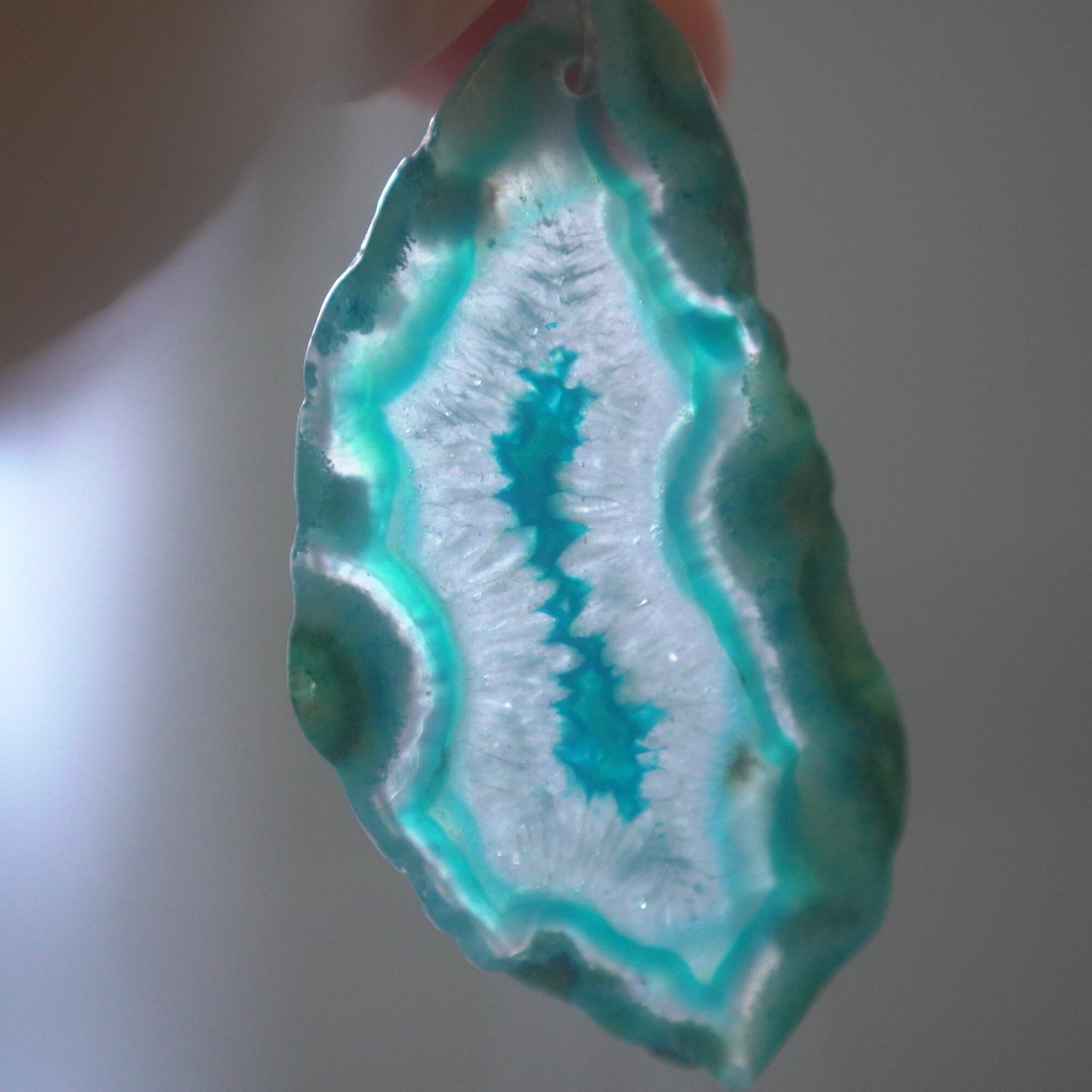 ✧染色の石なので耐光性(光による経年でのカラー変化の耐性)に優れているわけではなくベランダなど一日の中で長時間強い日光に当たるような場所に飾られるのはおすすめしないのですが、陽光に透かした時にだけ真価を発揮する美しさがありますので、是非、時折翳したりして光と一緒にお楽しみいただけたらと思います。特に濃い鮮やかな色など、色変化が気になられる場合は、日光のあまり当たらない場所に飾ってくださいね✧