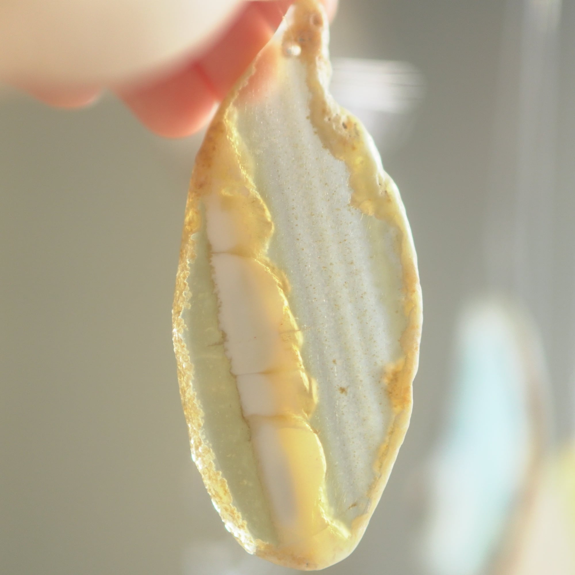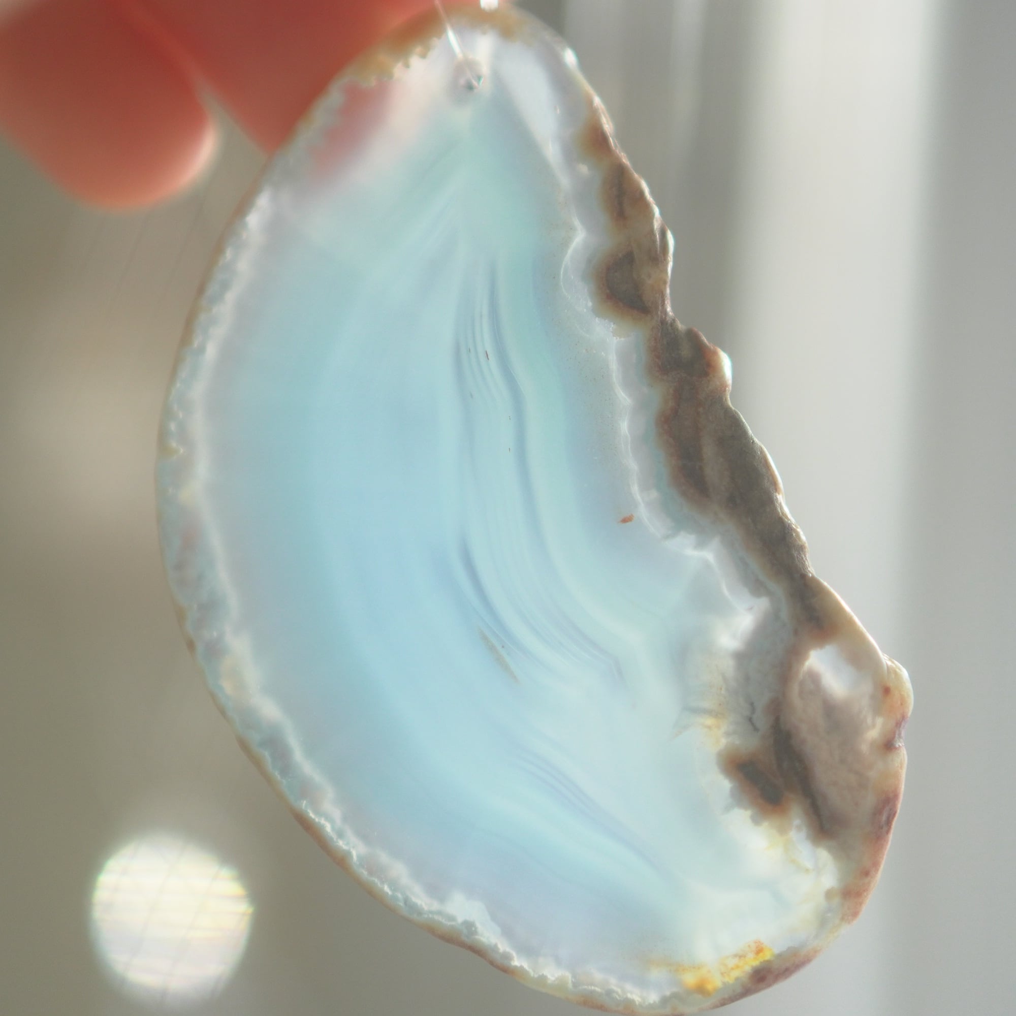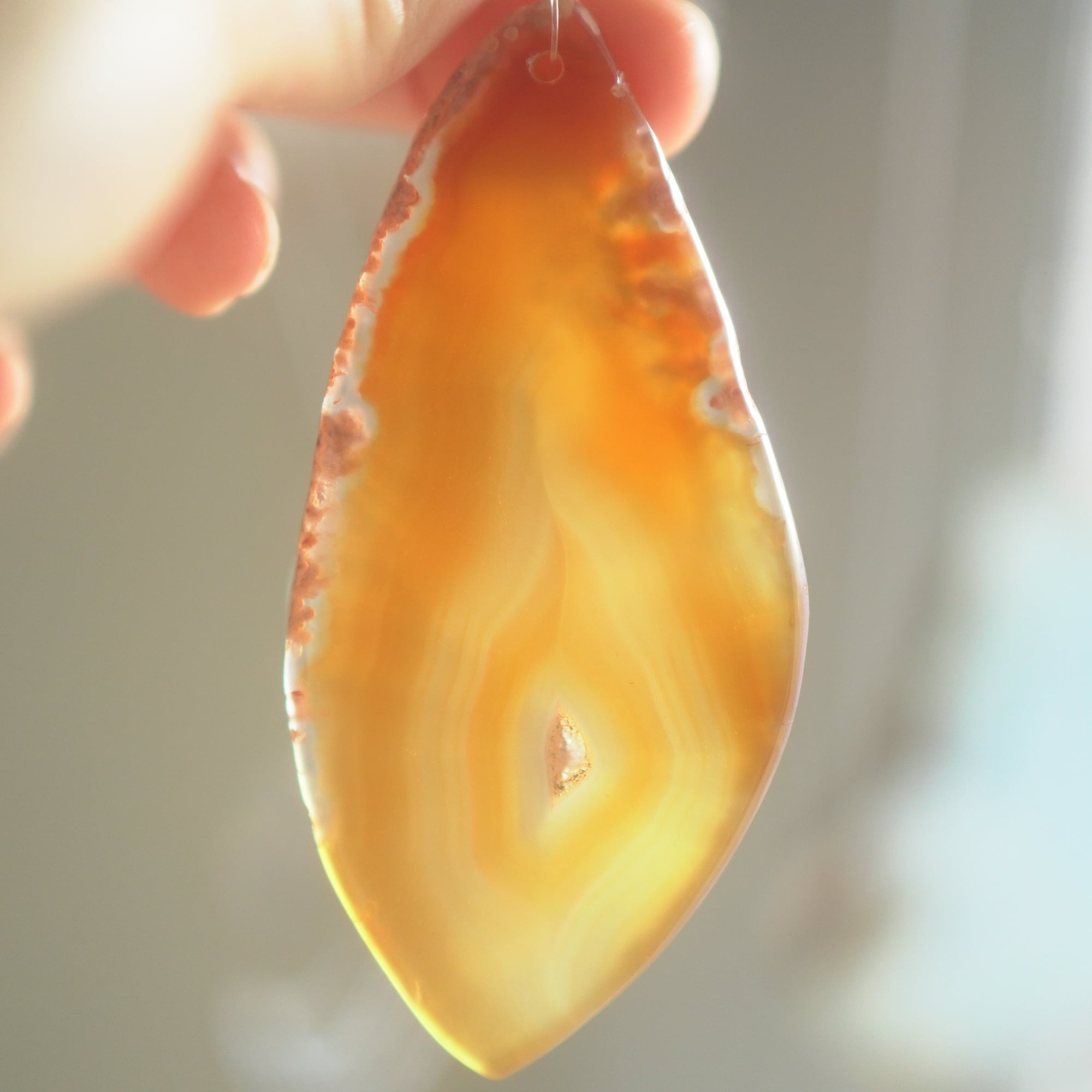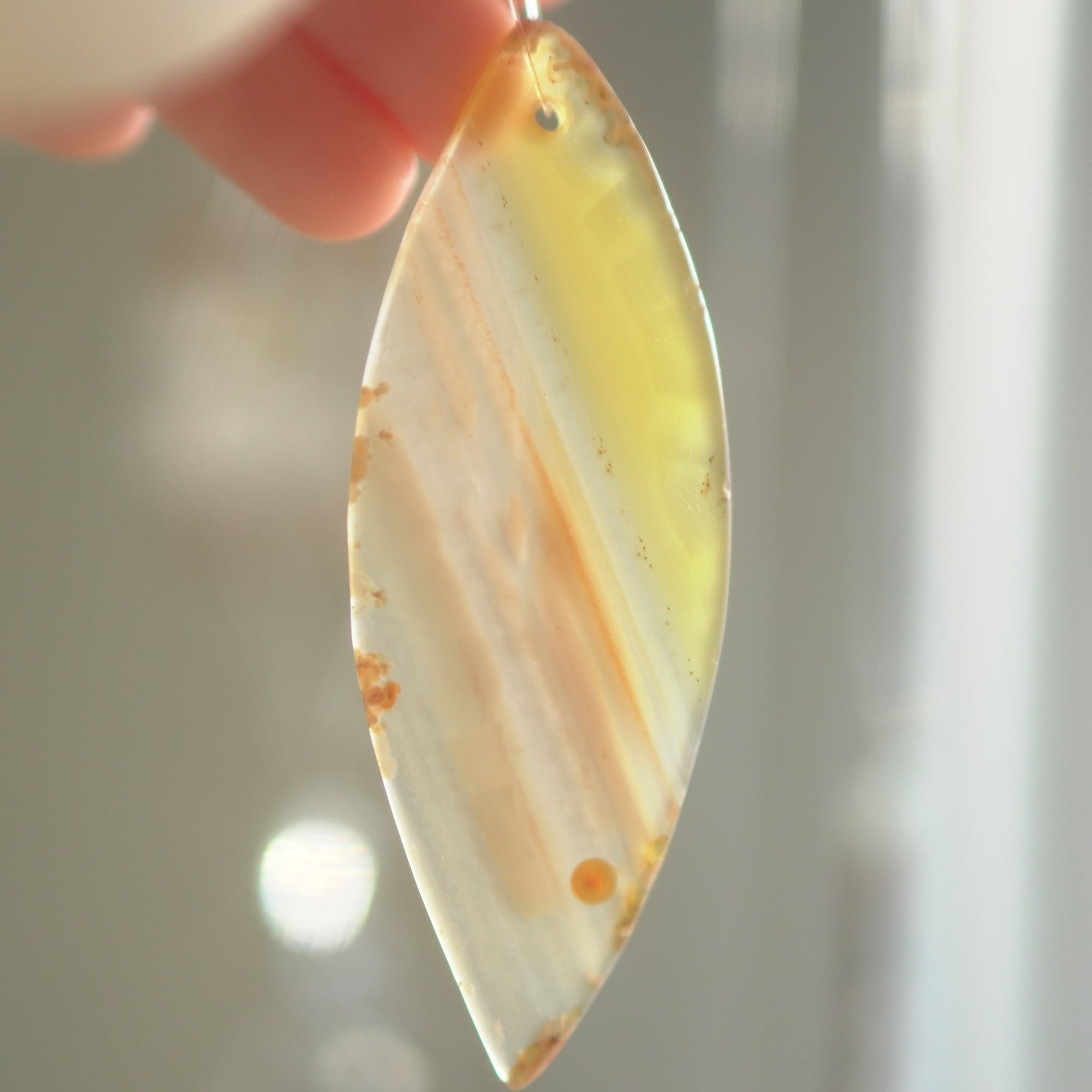 ✧染色の石なので耐光性(光による経年でのカラー変化の耐性)に優れているわけではなくベランダなど一日の中で長時間強い日光に当たるような場所に飾られるのはおすすめしないのですが、陽光に透かした時にだけ真価を発揮する美しさがありますので、是非、時折翳したりして光と一緒にお楽しみいただけたらと思います。特に濃い鮮やかな色など、色変化が気になられる場合は、日光のあまり当たらない場所に飾ってくださいね✧