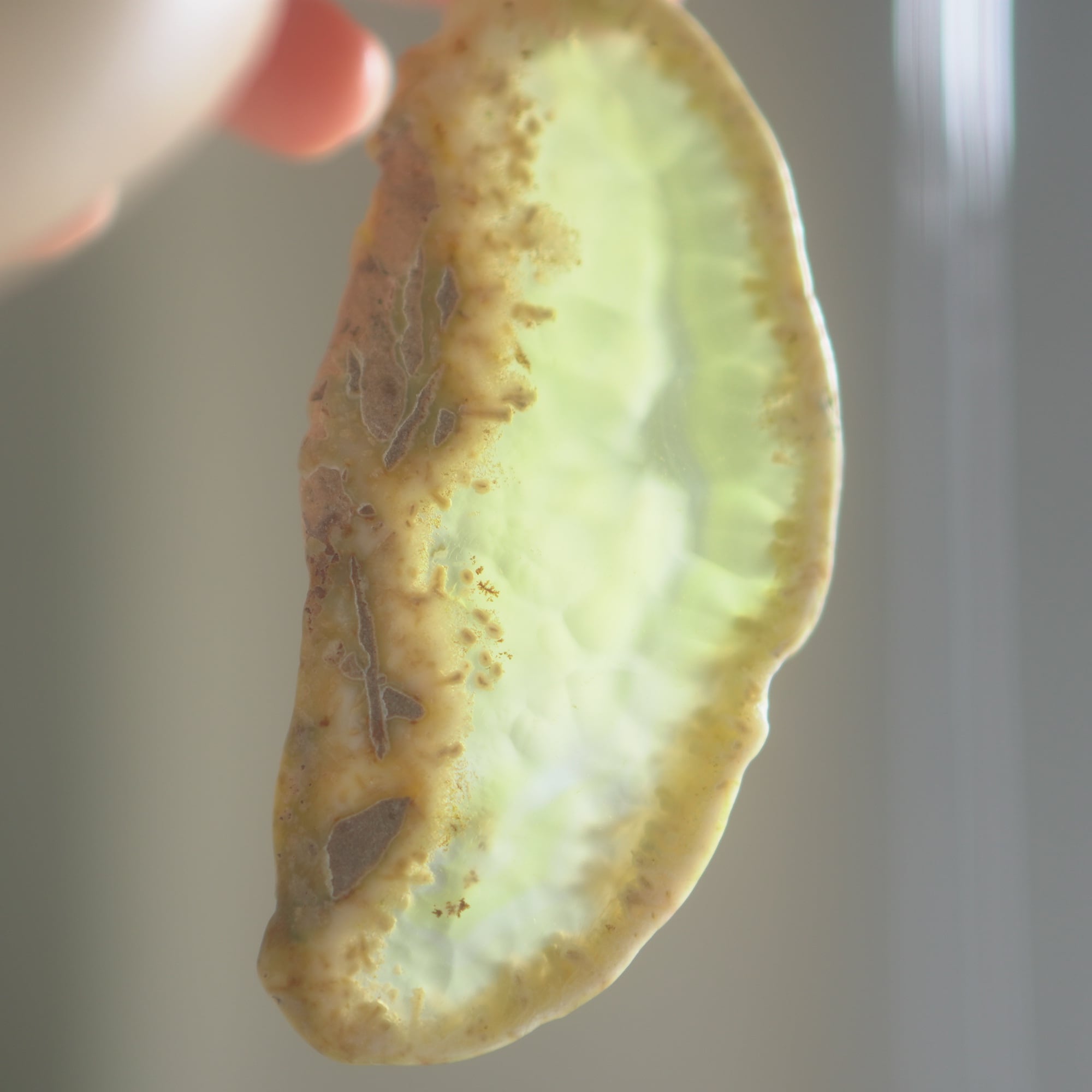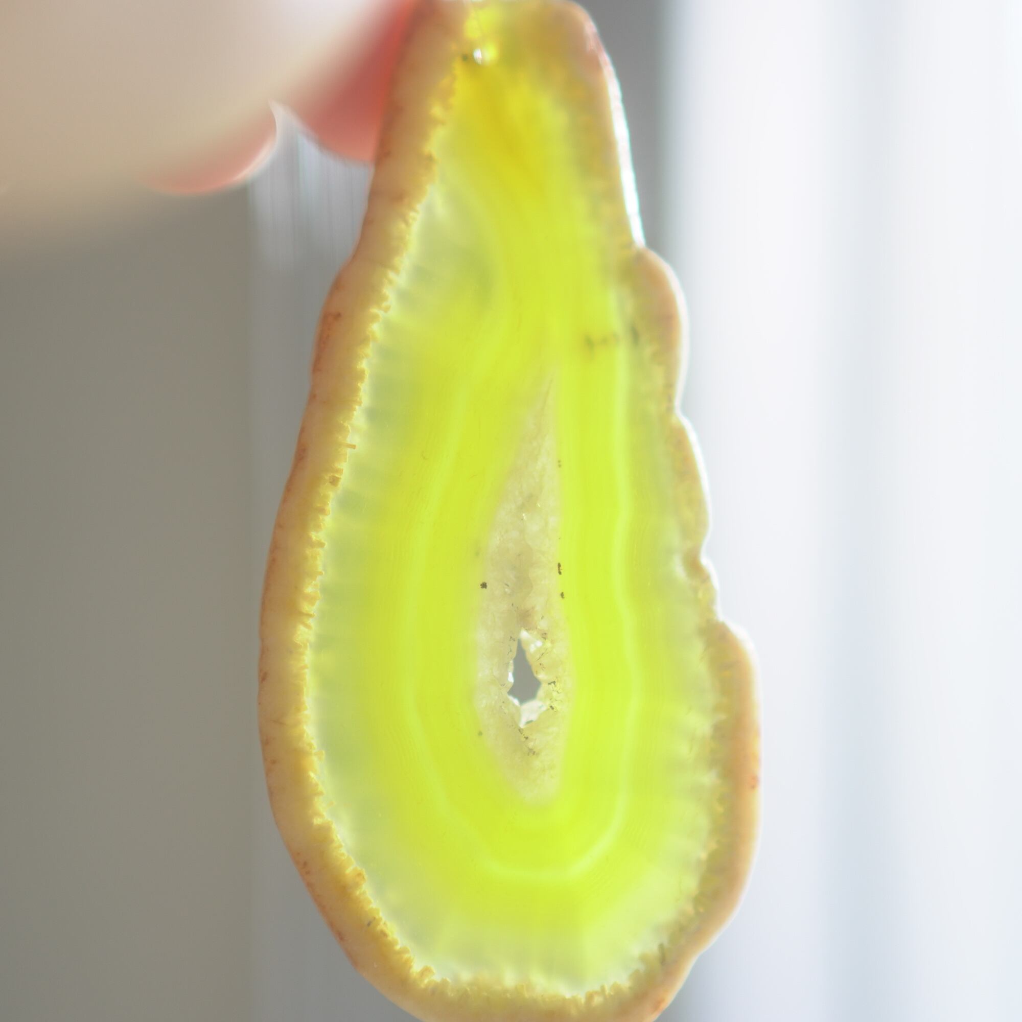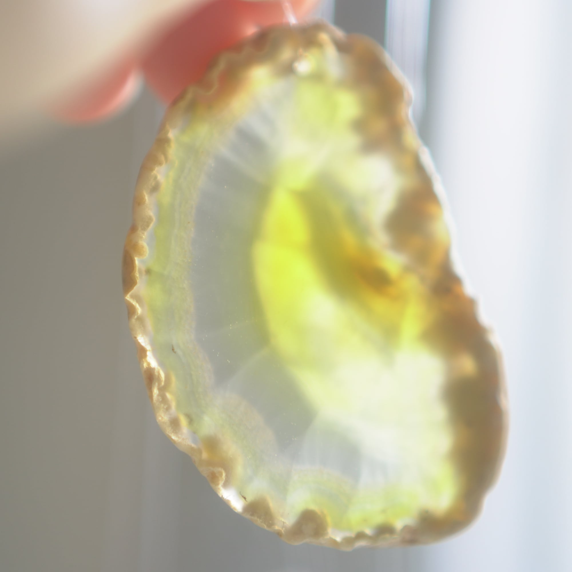 ✧染色の石なので耐光性(光による経年でのカラー変化の耐性)に優れているわけではなくベランダなど一日の中で長時間強い日光に当たるような場所に飾られるのはおすすめしないのですが、陽光に透かした時にだけ真価を発揮する美しさがありますので、是非、時折翳したりして光と一緒にお楽しみいただけたらと思います。特に濃い鮮やかな色など、色変化が気になられる場合は、日光のあまり当たらない場所に飾ってくださいね✧