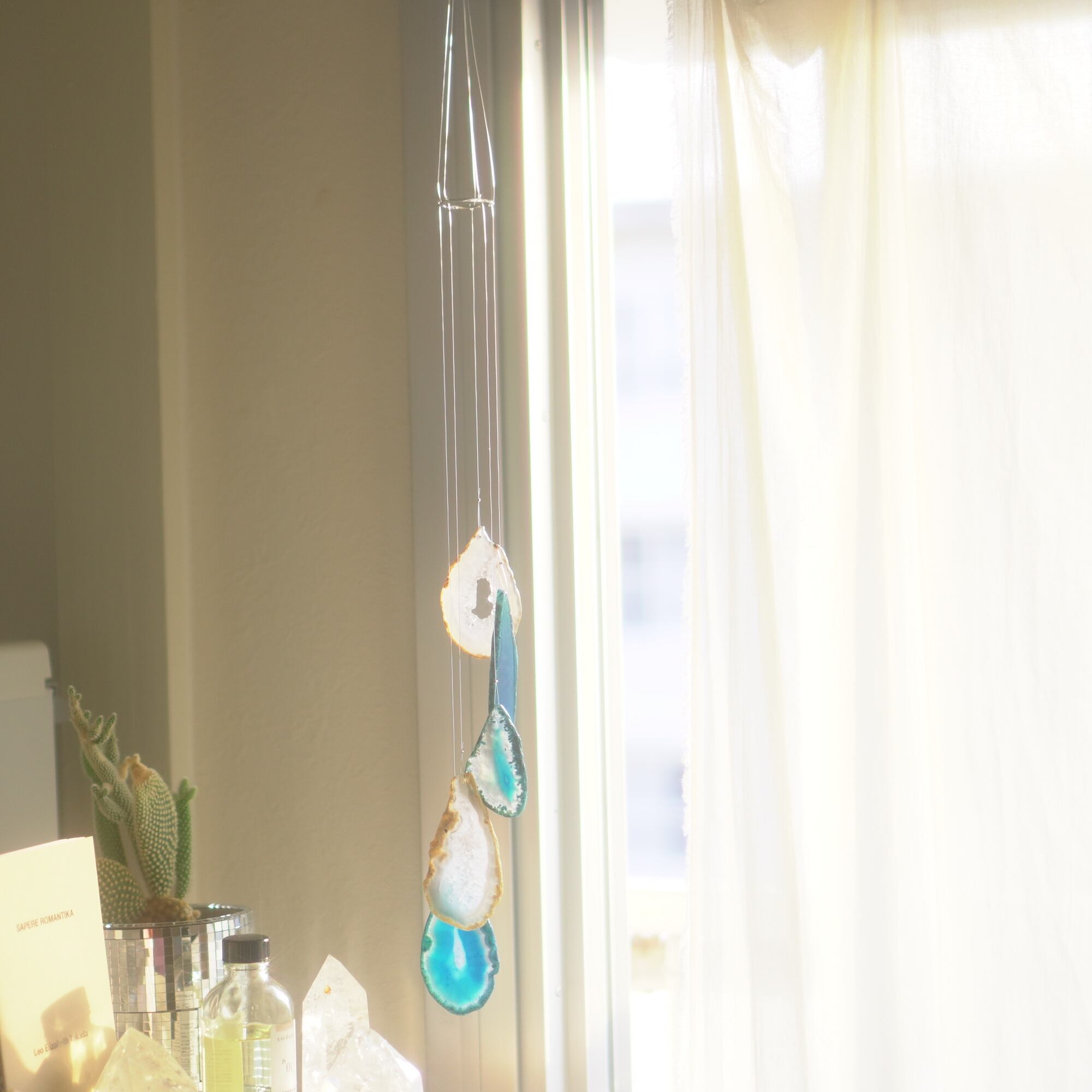 そしてカーテン越しではなく直射日光を当てた際のサンキャッチャーとしてのチャイムも、ピカピカとした美しい光をお部屋の中に運んでくれます。