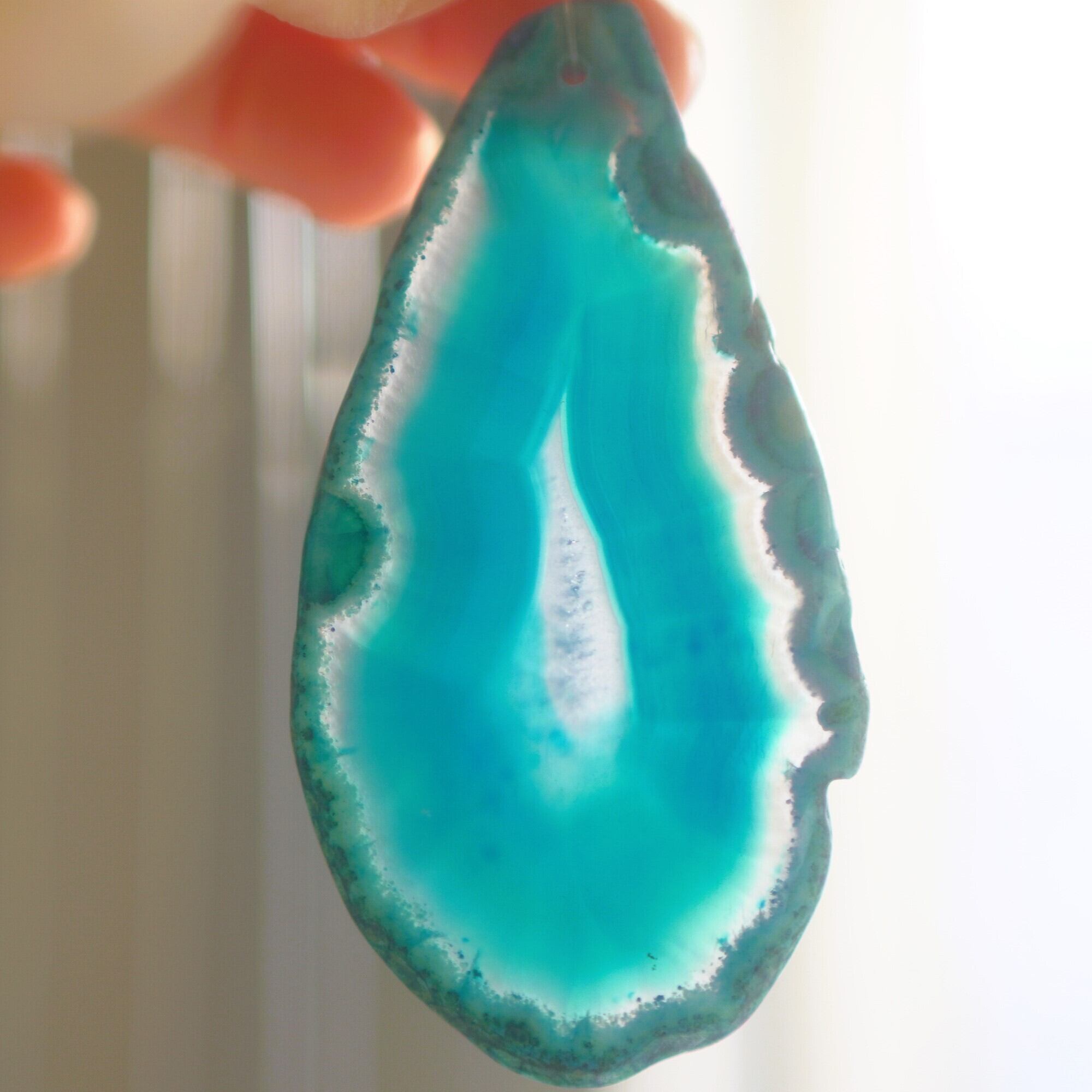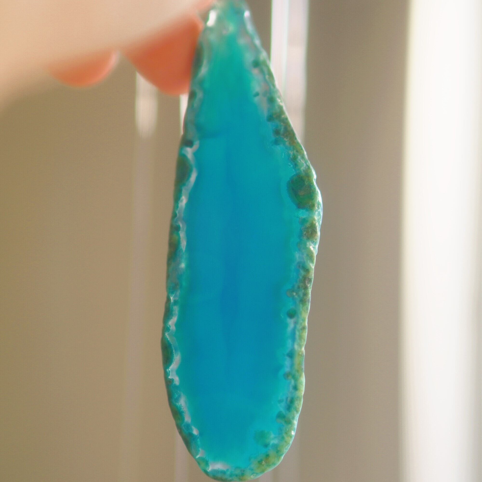 ✧染色の石なので耐光性(光による経年でのカラー変化の耐性)に優れているわけではなくベランダなど一日の中で長時間強い日光に当たるような場所に飾られるのはおすすめしないのですが、陽光に透かした時にだけ真価を発揮する美しさがありますので、是非、時折翳したりして光と一緒にお楽しみいただけたらと思います。特に濃い鮮やかな色など、色変化が気になられる場合は、日光のあまり当たらない場所に飾ってくださいね✧