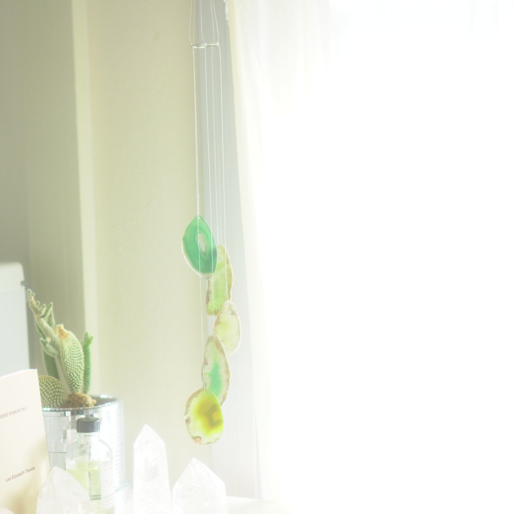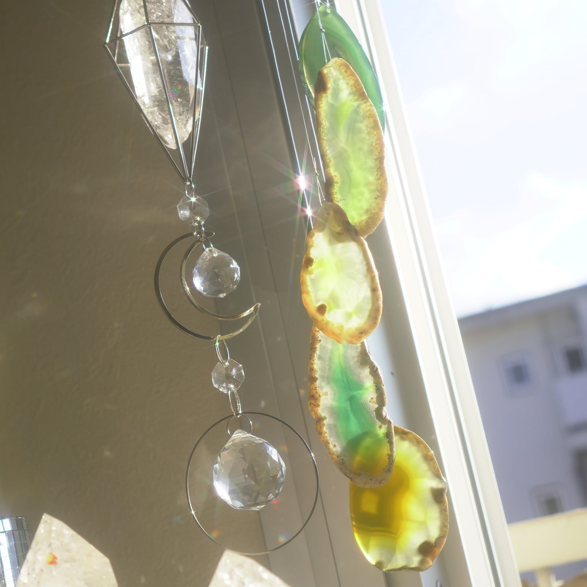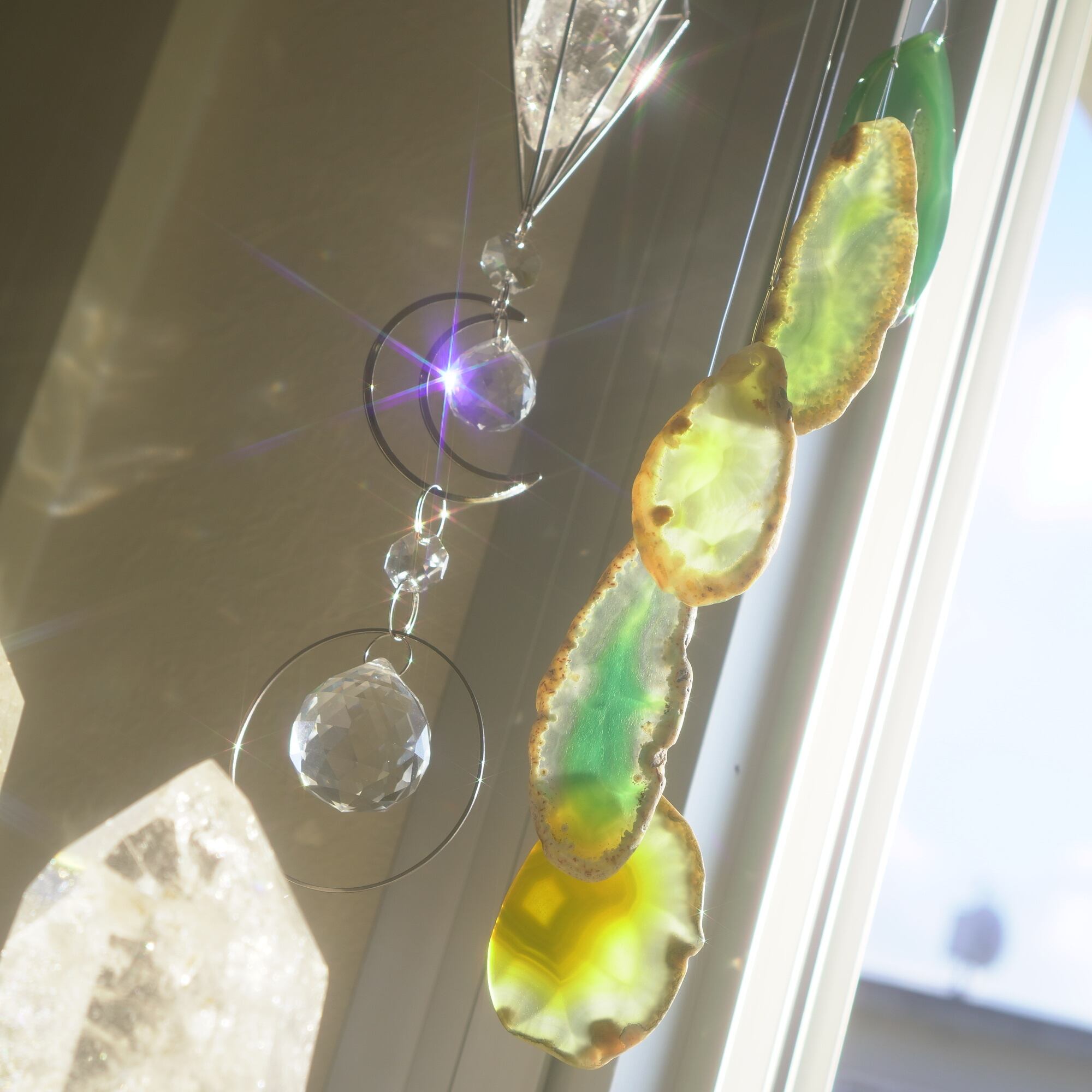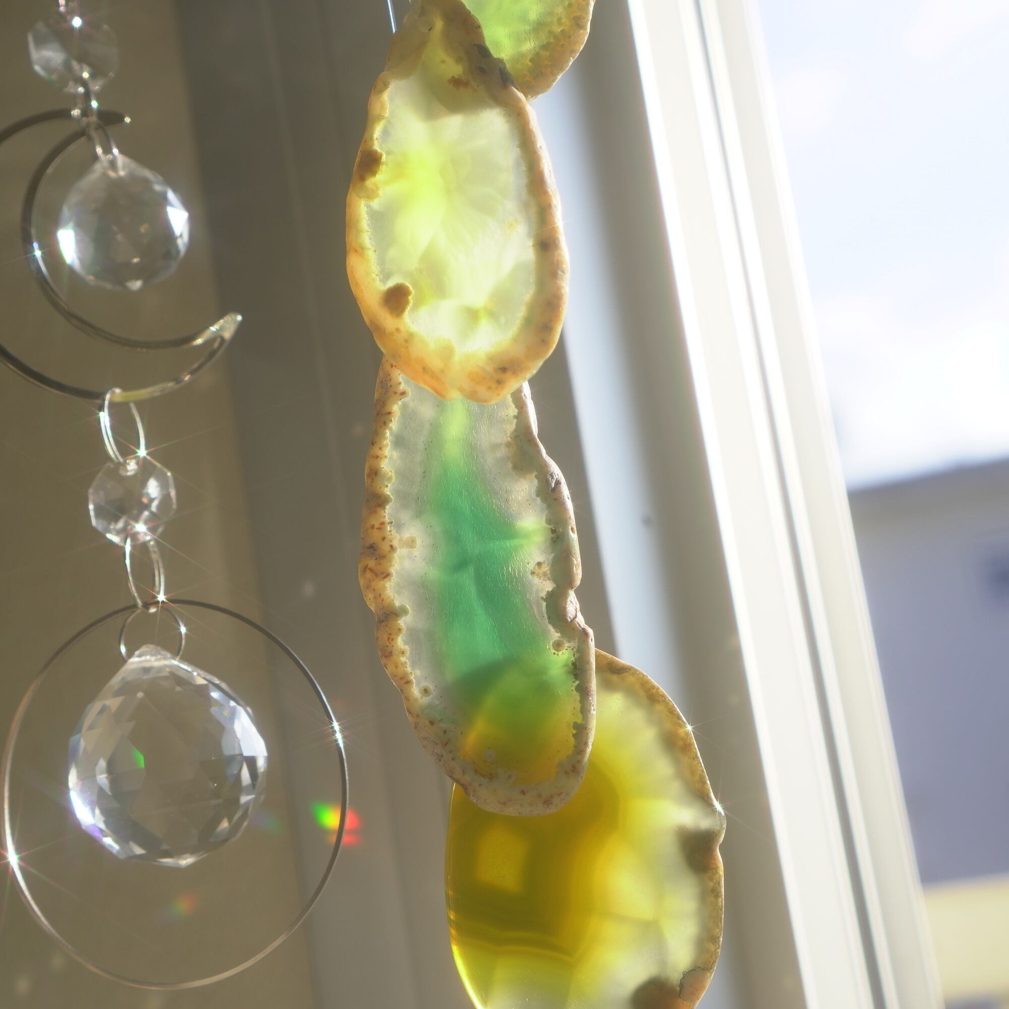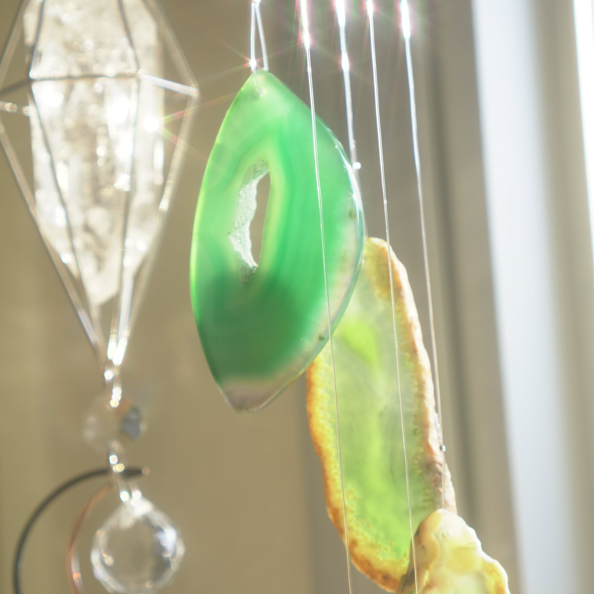 そしてカーテン越しではなく直射日光を当てた際のサンキャッチャーとしてのチャイムも、ピカピカとした美しい光をお部屋の中に運んでくれます。
