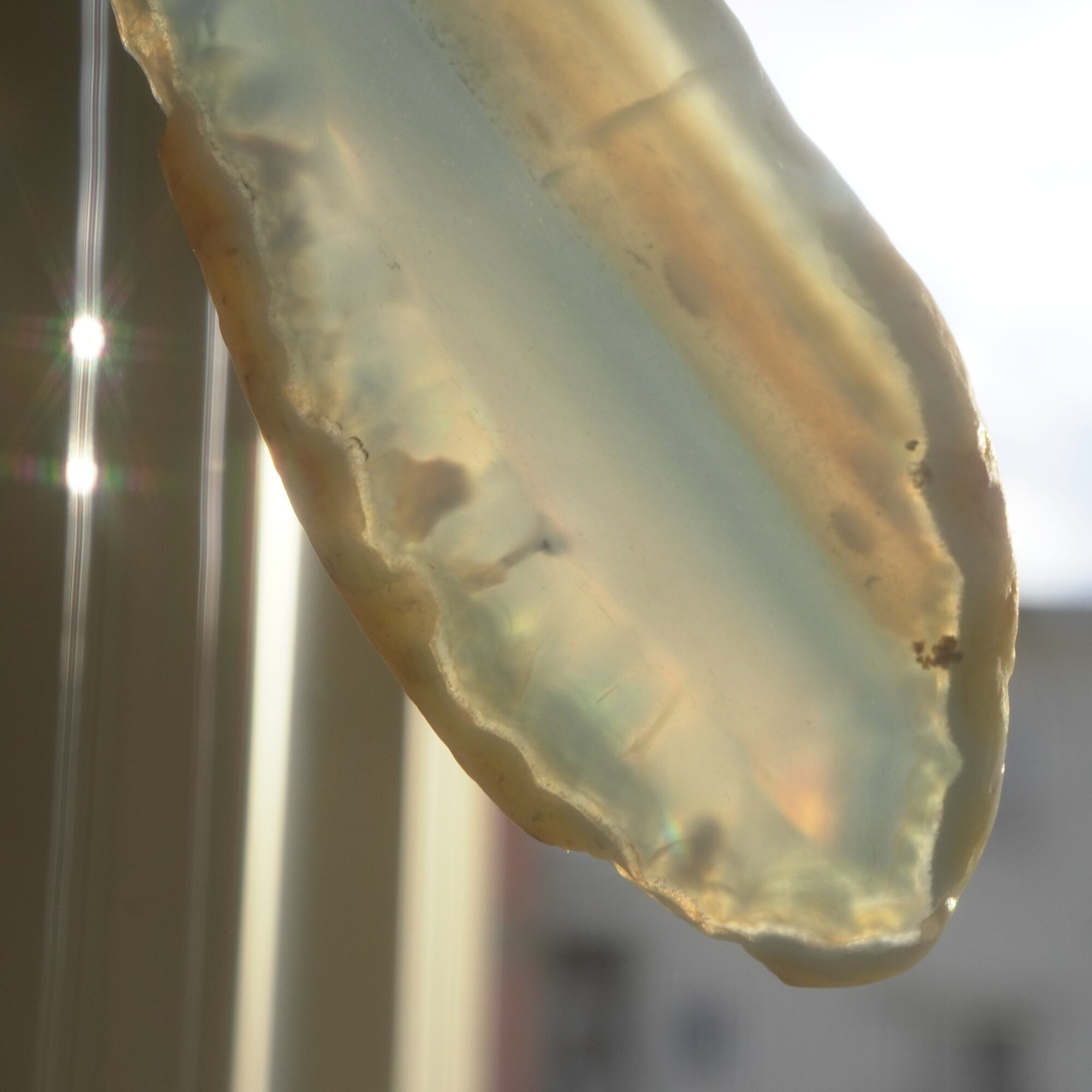 ✧染色の石なので耐光性(光による経年でのカラー変化の耐性)に優れているわけではなくベランダなど一日の中で長時間強い日光に当たるような場所に飾られるのはおすすめしないのですが、陽光に透かした時にだけ真価を発揮する美しさがありますので、是非、時折翳したりして光と一緒にお楽しみいただけたらと思います。特に濃い鮮やかな色など、色変化が気になられる場合は、日光のあまり当たらない場所に飾ってくださいね✧