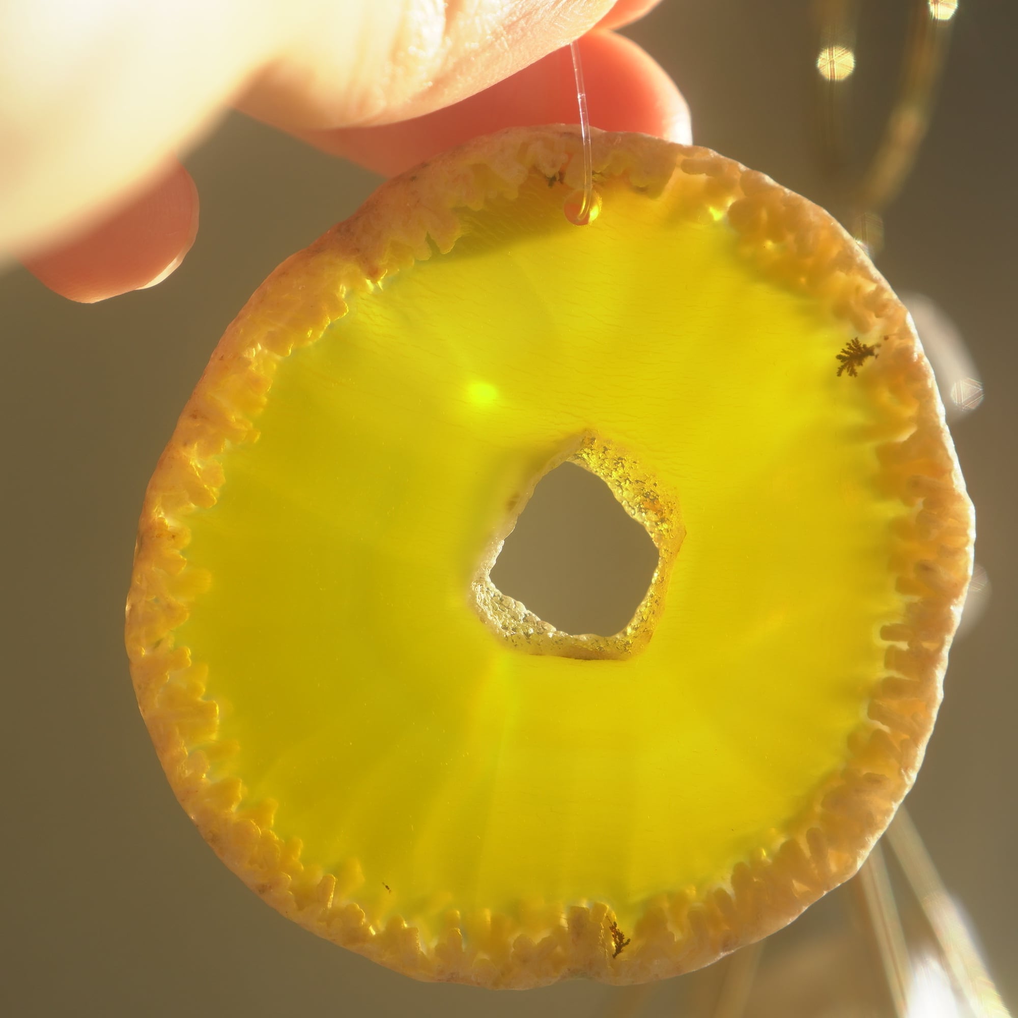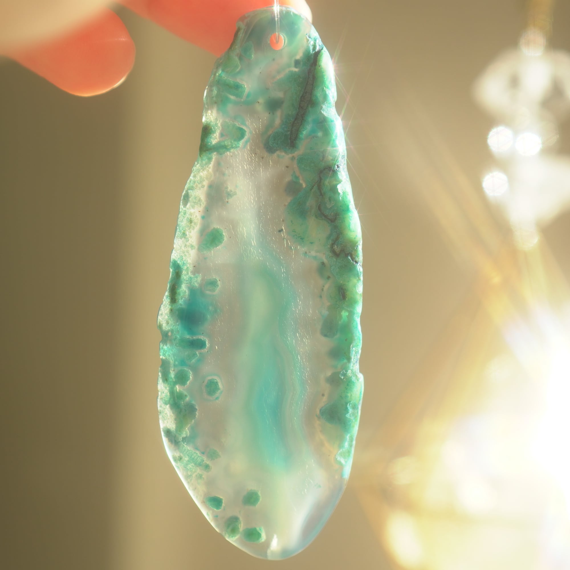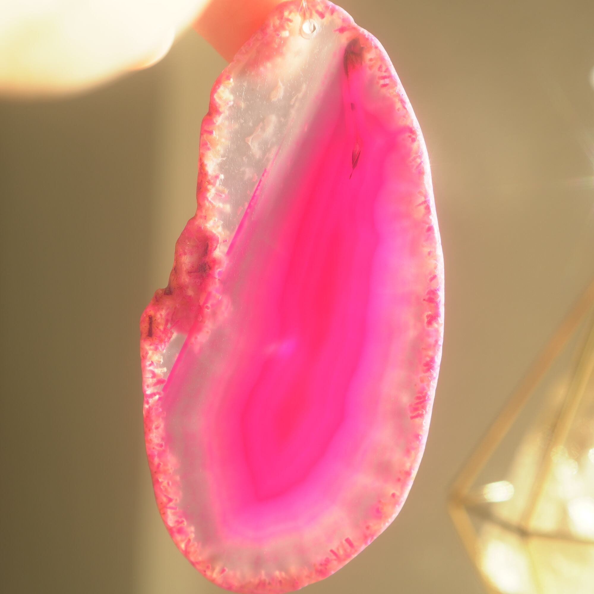 ✧染色の石なので耐光性(光による経年でのカラー変化の耐性)に優れているわけではなくベランダなど一日の中で長時間強い日光に当たるような場所に飾られるのはおすすめしないのですが、陽光に透かした時にだけ真価を発揮する美しさがありますので、是非、時折翳したりして光と一緒にお楽しみいただけたらと思います。特に濃い鮮やかな色など、色変化が気になられる場合は、日光のあまり当たらない場所に飾ってくださいね✧