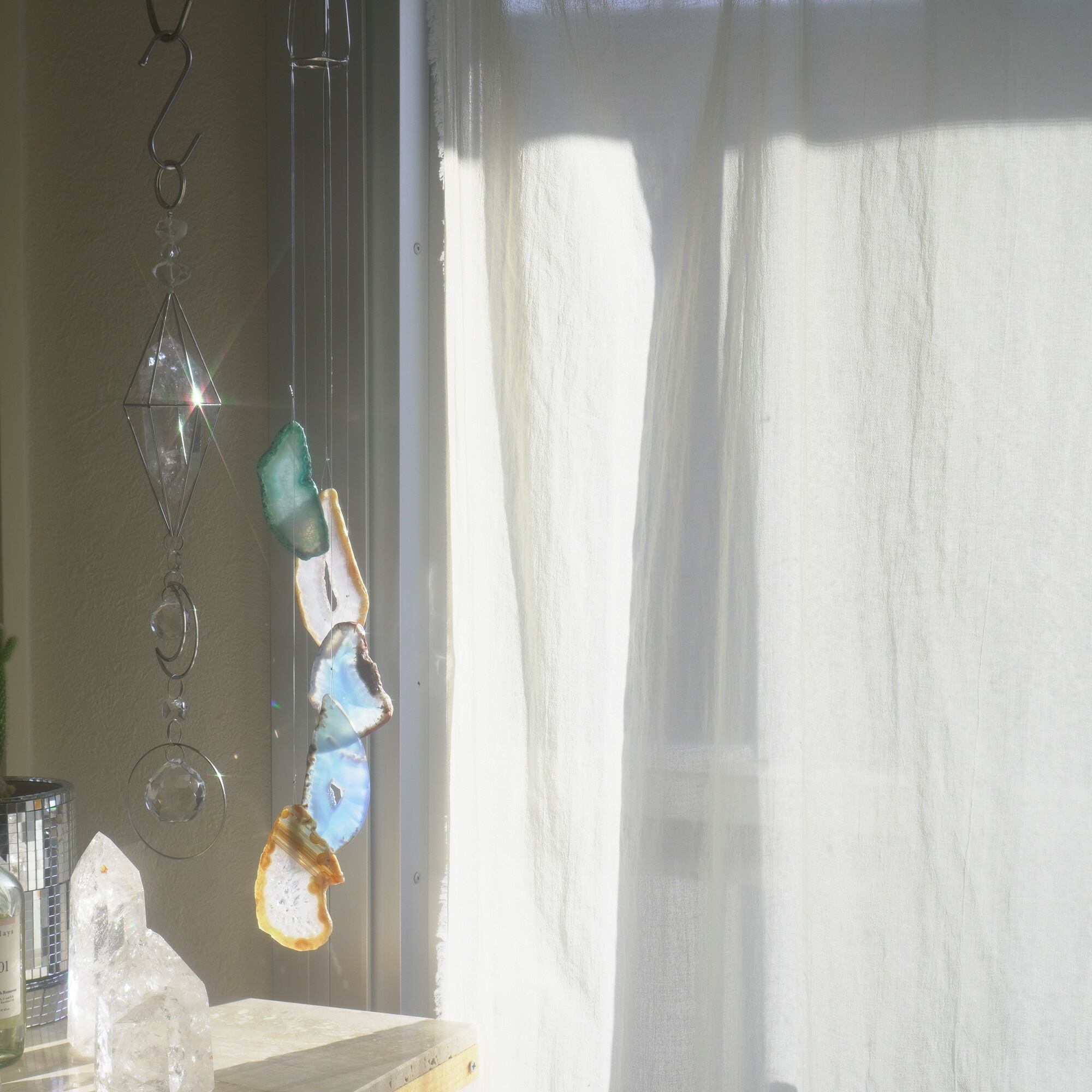 そしてカーテン越しではなく直射日光を当てた際のサンキャッチャーとしてのチャイムも、ピカピカとした美しい光をお部屋の中に運んでくれます。