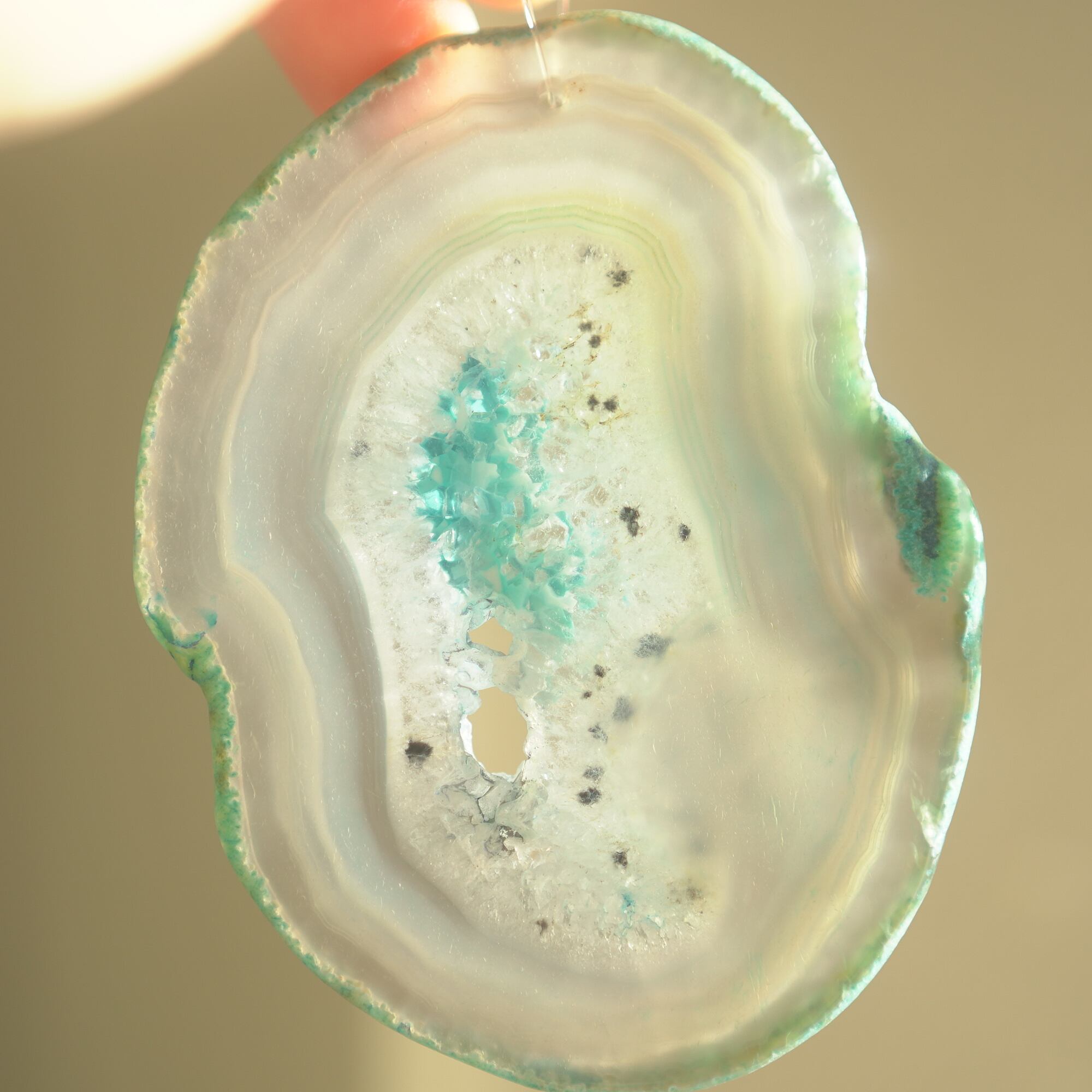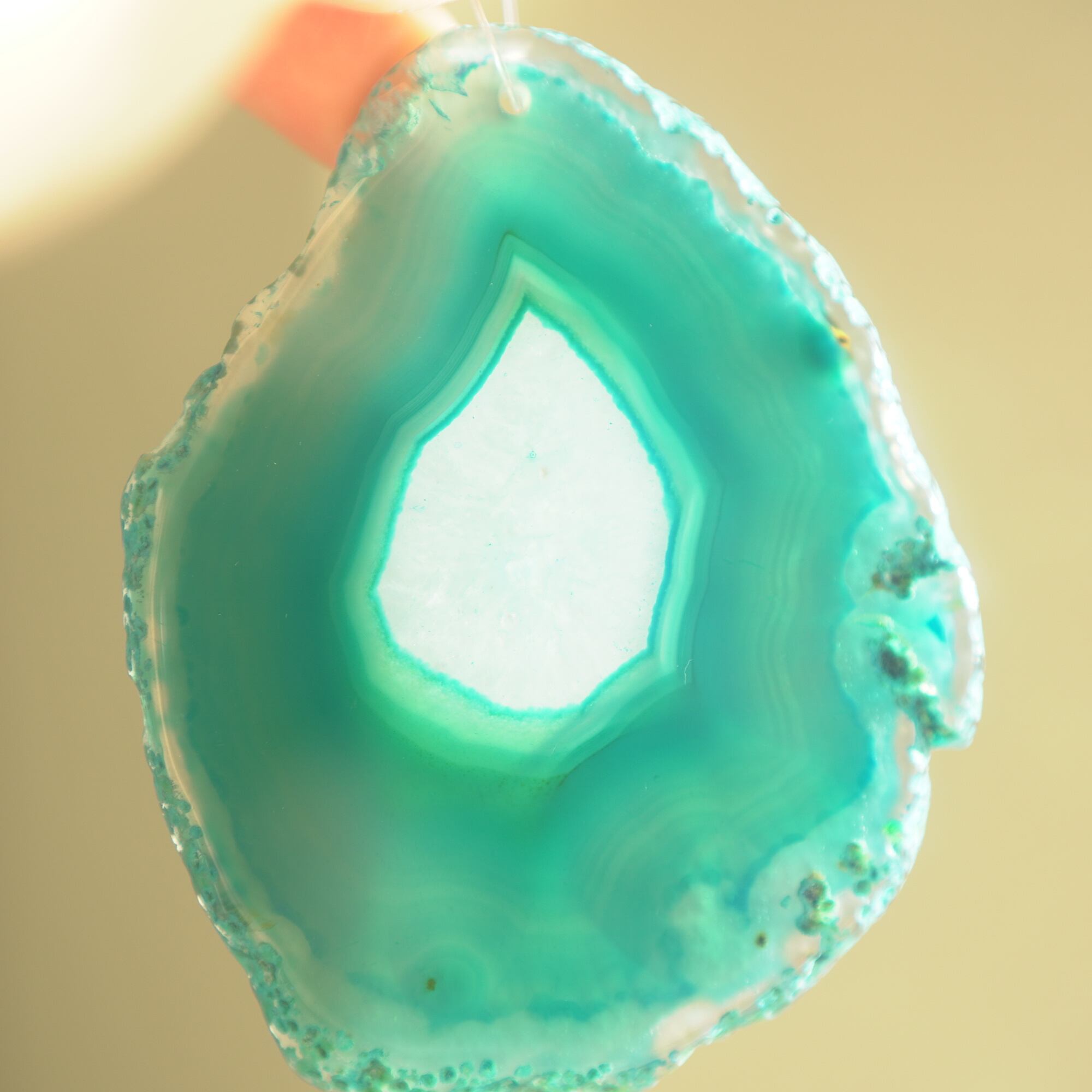 ✧染色の石なので耐光性(光による経年でのカラー変化の耐性)に優れているわけではなくベランダなど一日の中で長時間強い日光に当たるような場所に飾られるのはおすすめしないのですが、陽光に透かした時にだけ真価を発揮する美しさがありますので、是非、時折翳したりして光と一緒にお楽しみいただけたらと思います。特に濃い鮮やかな色など、色変化が気になられる場合は、日光のあまり当たらない場所に飾ってくださいね✧