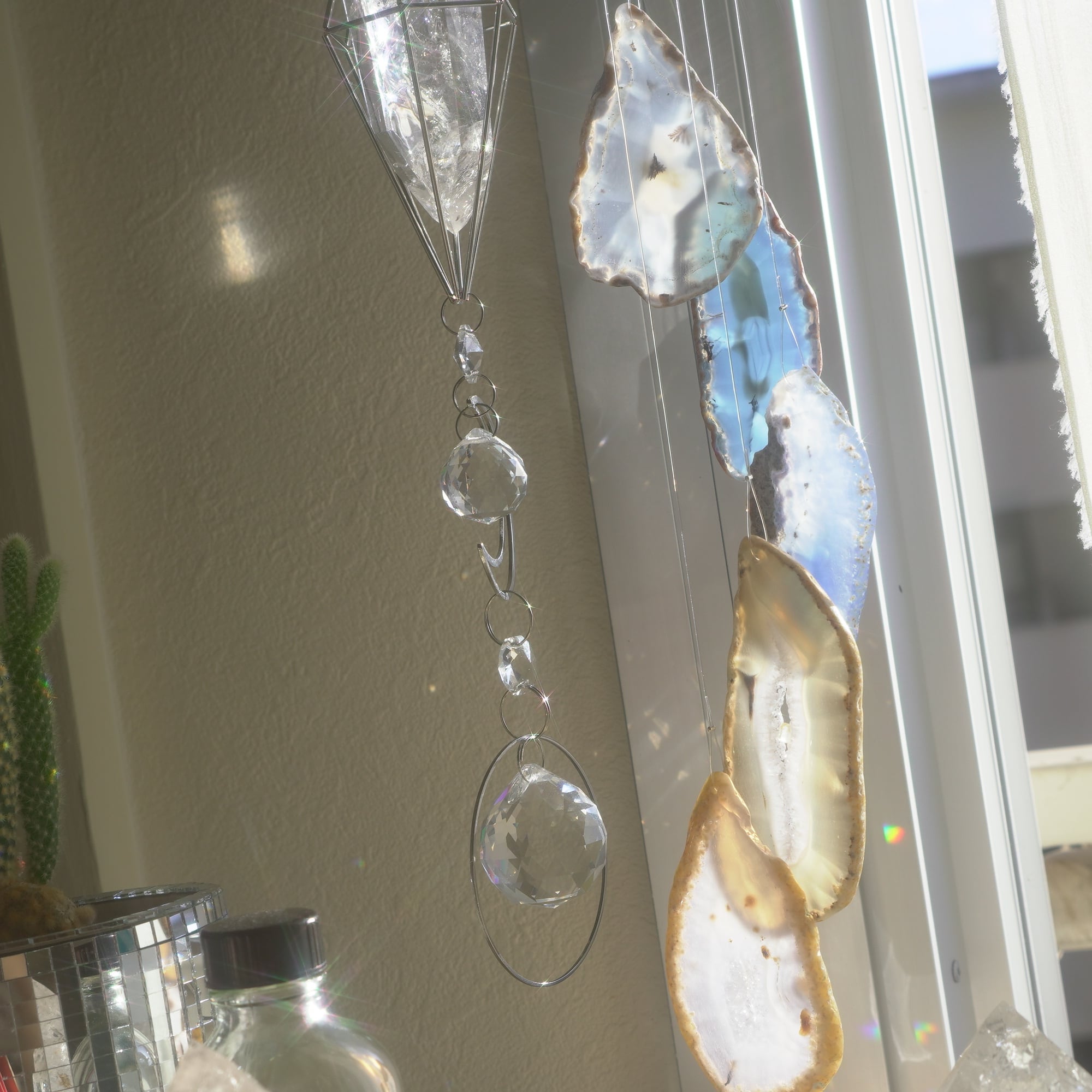 そしてカーテン越しではなく直射日光を当てた際のサンキャッチャーとしてのチャイムも、ピカピカとした美しい光をお部屋の中に運んでくれます。
